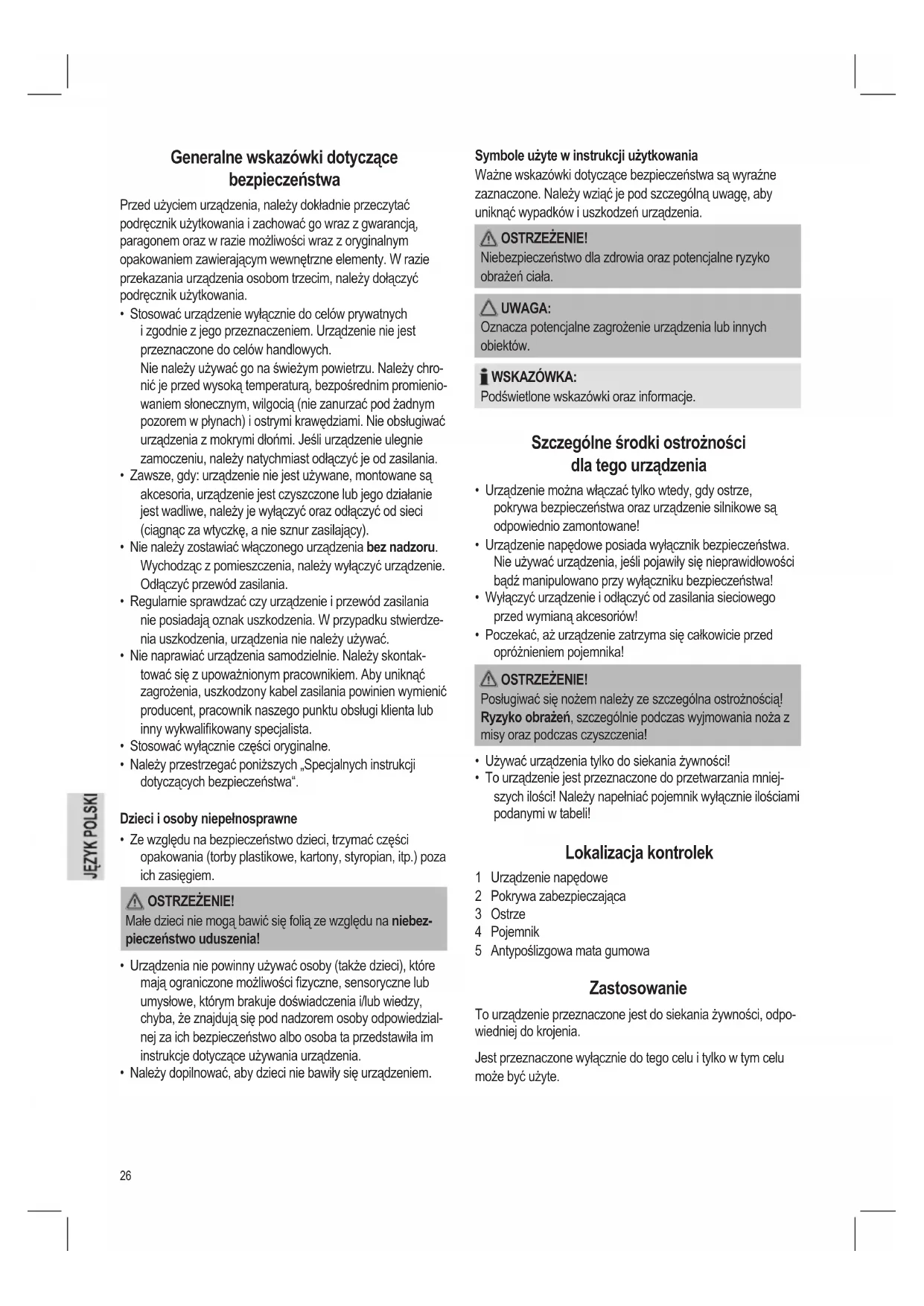 Lokalizacja kontrolek ..................................................strona 3 Instrukcja użytkowania ...............................................strona 26 Techniczne specykacje ............................................strona 28 Ogólne warunki gwarancji ..........................................strona 28