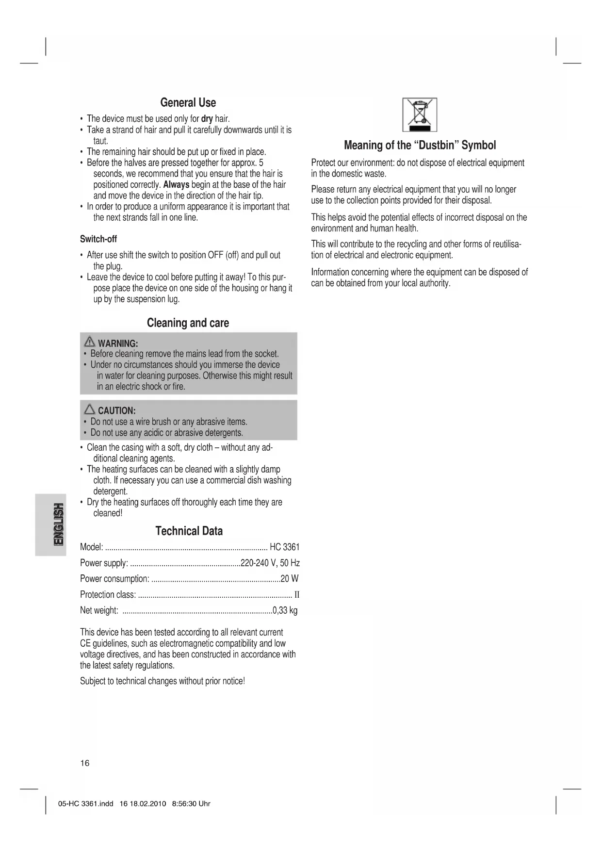 Pobierz instrukcję dla swojego Prostownica do włosów w formacie PDF za darmo! Znajdź swoją instrukcję HC 3361 - CLATRONIC i weź swoje urządzenie elektroniczne z powrotem w ręce. Na tej stronie opublikowane są wszystkie dokumenty niezbędne do korzystania z urządzenia. HC 3361 marki CLATRONIC.
