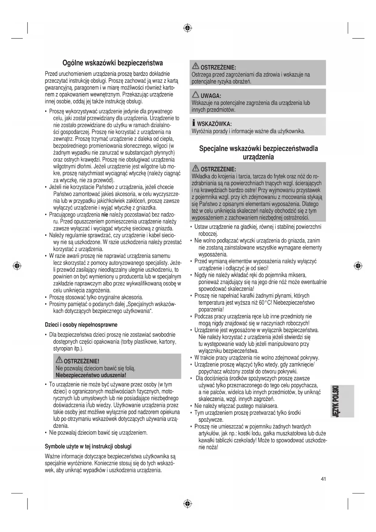 • Nigdy nie należy wkładać ręki do pojemnika miksera,