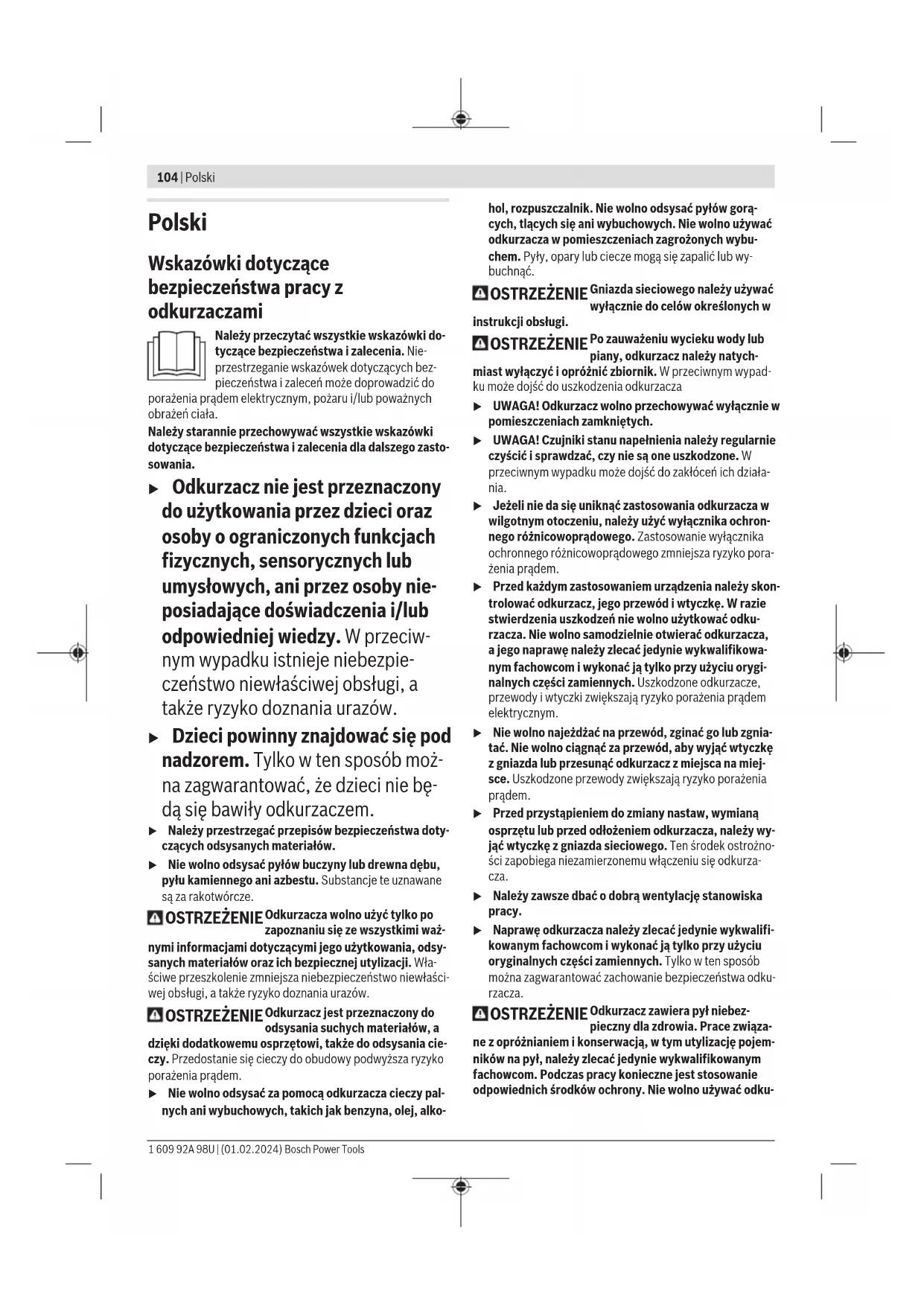 odpowiednich środków ochrony. Nie wolno używać odku- 1 609 92A 98U | (01.02.2024) Bosch Power ToolsPolski | 105