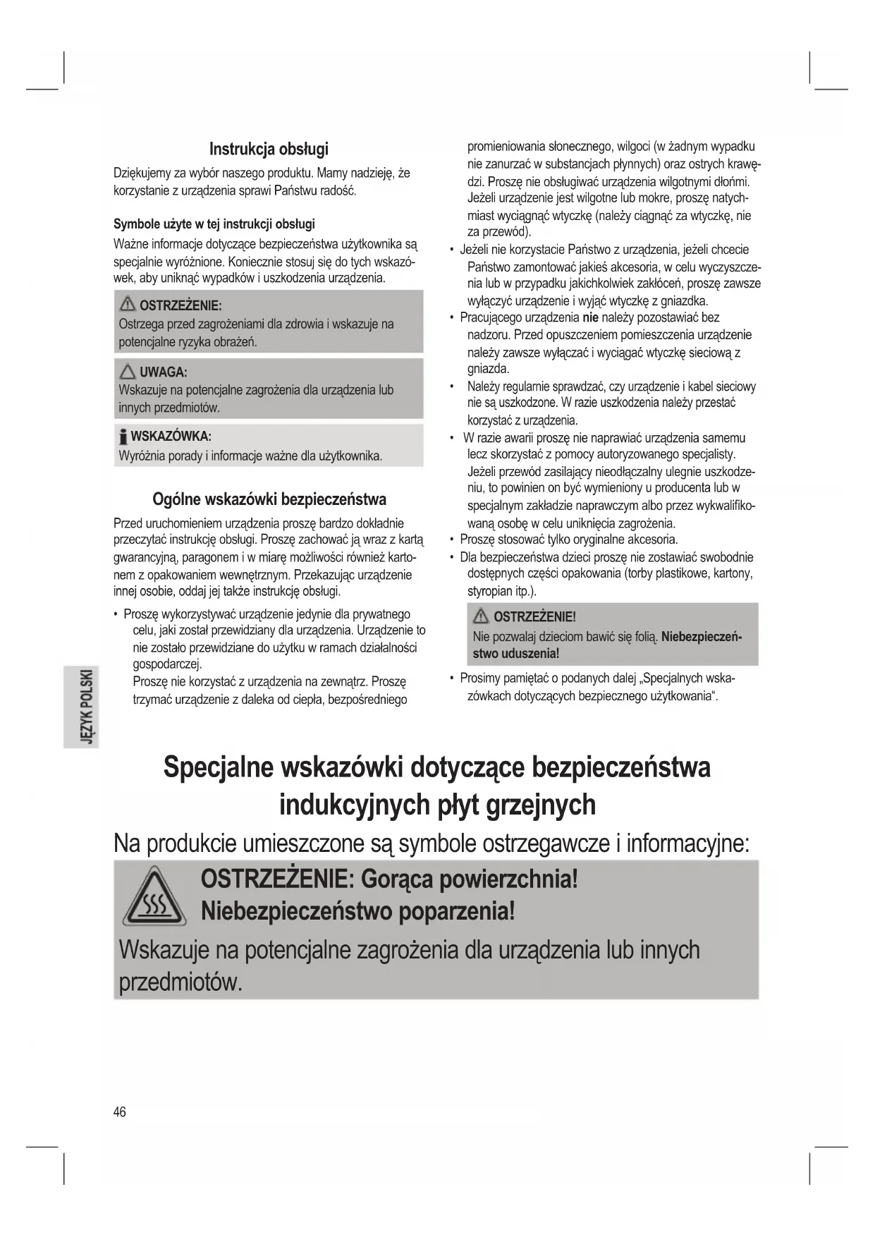 • Gorące powierzchnie! W przypadku indukcyjnego pola grzejne-