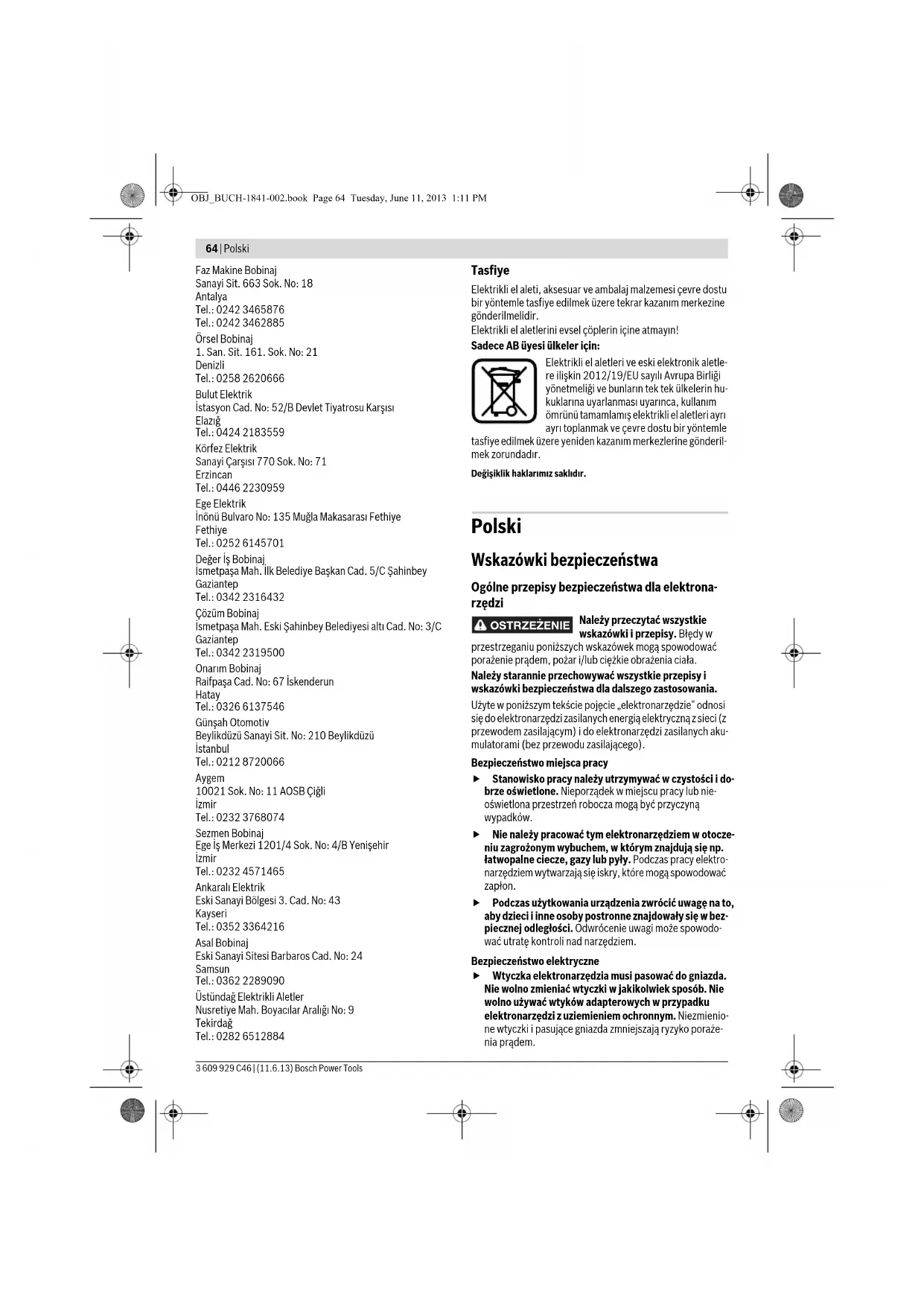 Bosch Power Tools 3 609 929 C46 | (11.6.13)