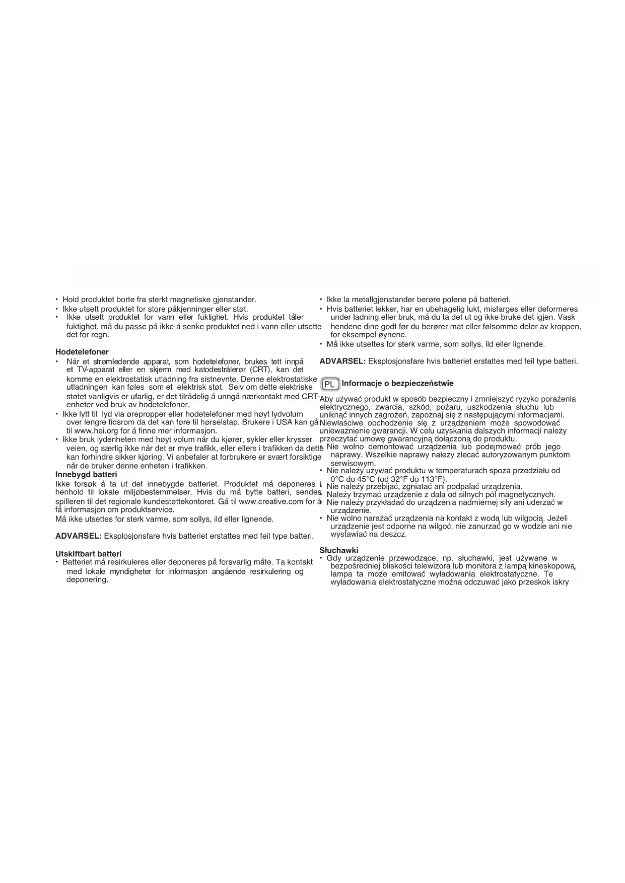 Pobierz instrukcję dla swojego Ecouteur w formacie PDF za darmo! Znajdź swoją instrukcję HN900 - CREATIVE i weź swoje urządzenie elektroniczne z powrotem w ręce. Na tej stronie opublikowane są wszystkie dokumenty niezbędne do korzystania z urządzenia. HN900 marki CREATIVE.