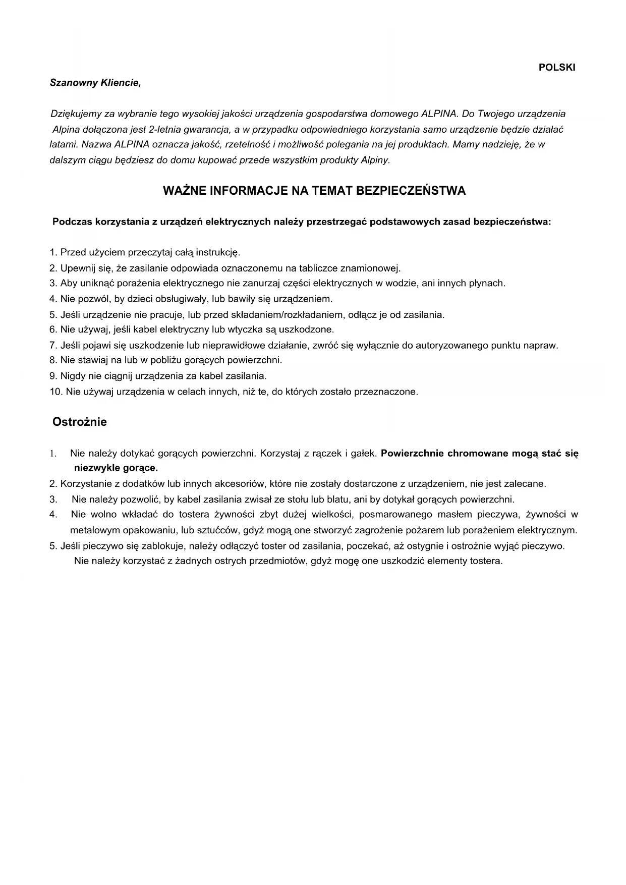 SF 2506 - Toster ALPINA - Bezpłatna instrukcja obsługi
