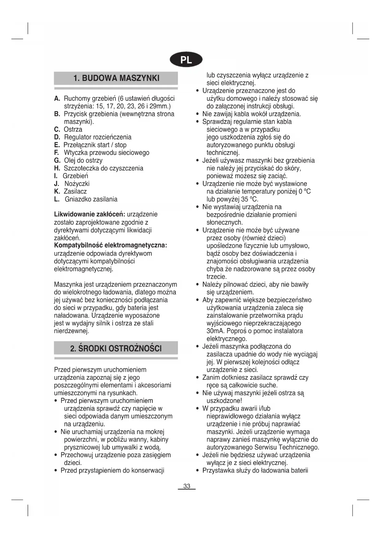 1. BUDOWA MASZYNKI A. Ruchomy grzebień (6 ustawień długości