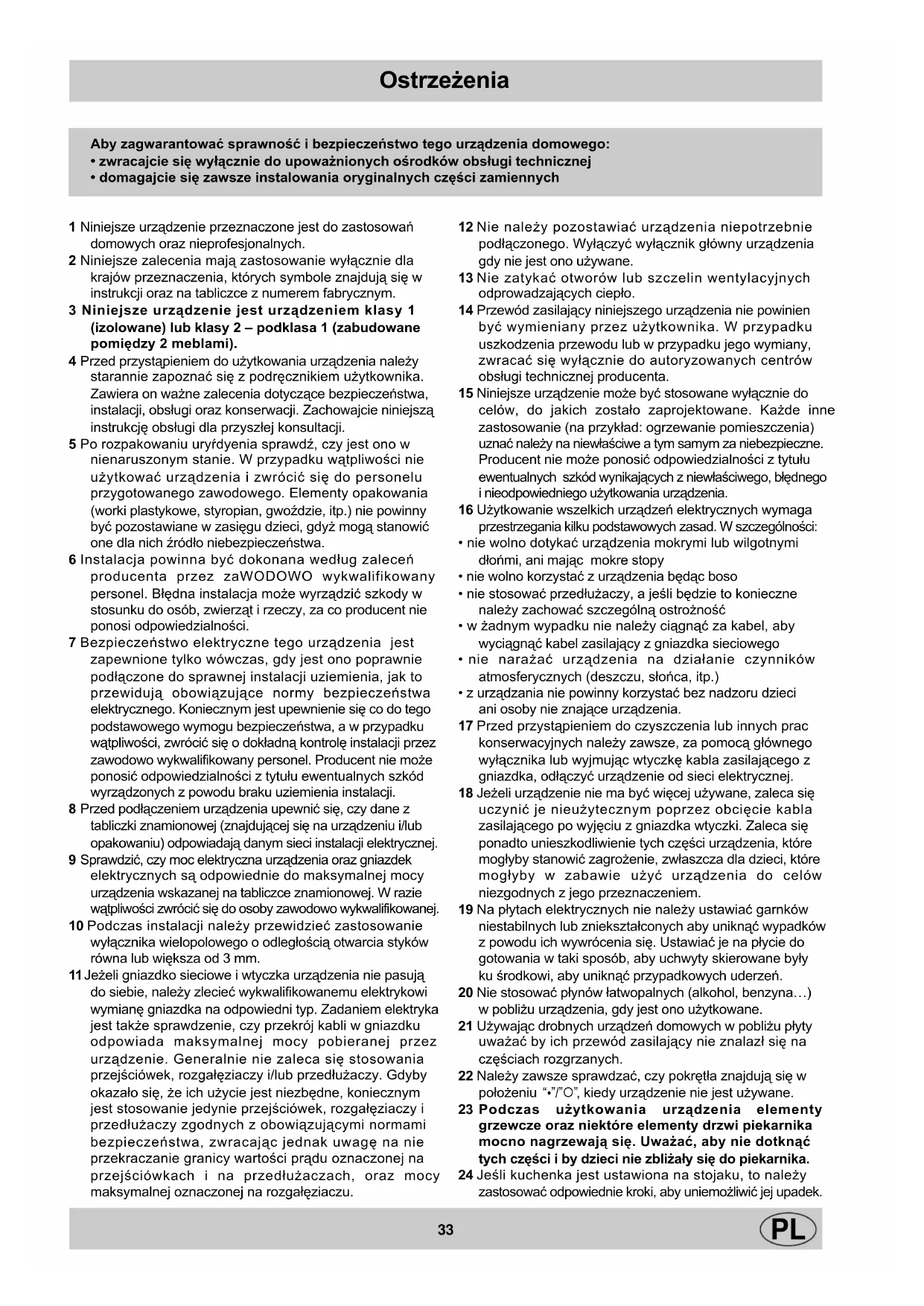 Aby zagwarantowaæ sprawnoæ i bezpieczeñstwo tego urz¹dzenia domowego: