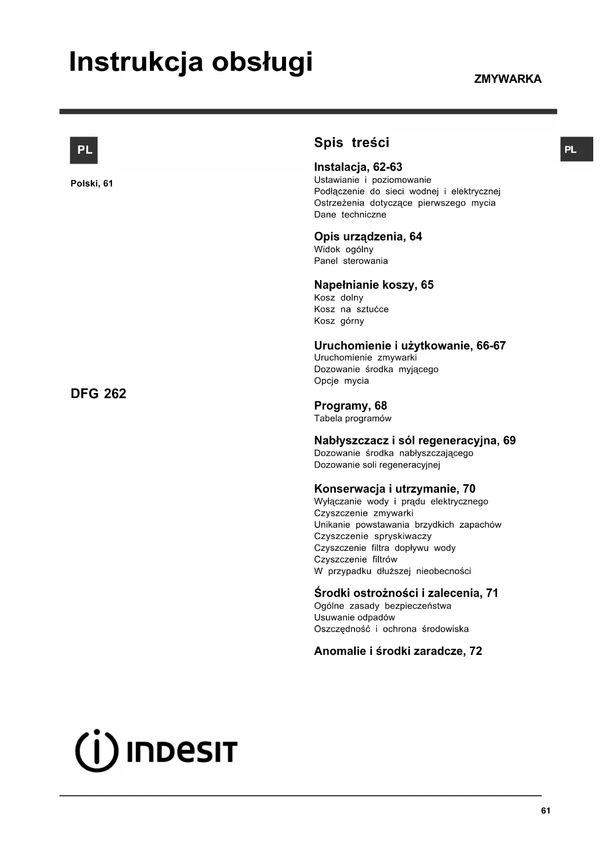 DFG 262 S EU - Zmywarki INDESIT - Bezpłatna instrukcja obsługi