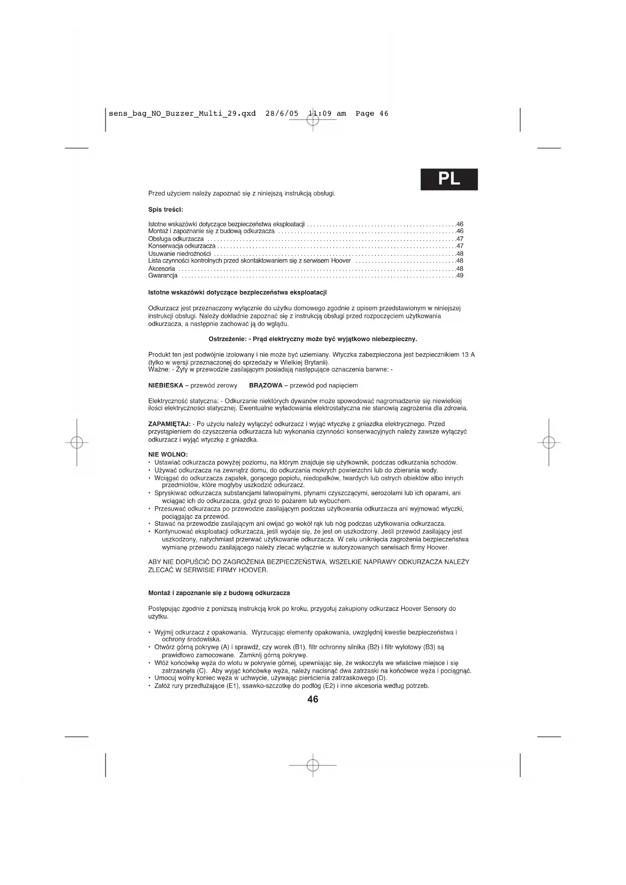 sens_bag_NO_Buzzer_Multi_29.qxd 28/6/05 11:09 am Page 46PL Obsługa odkurzacza