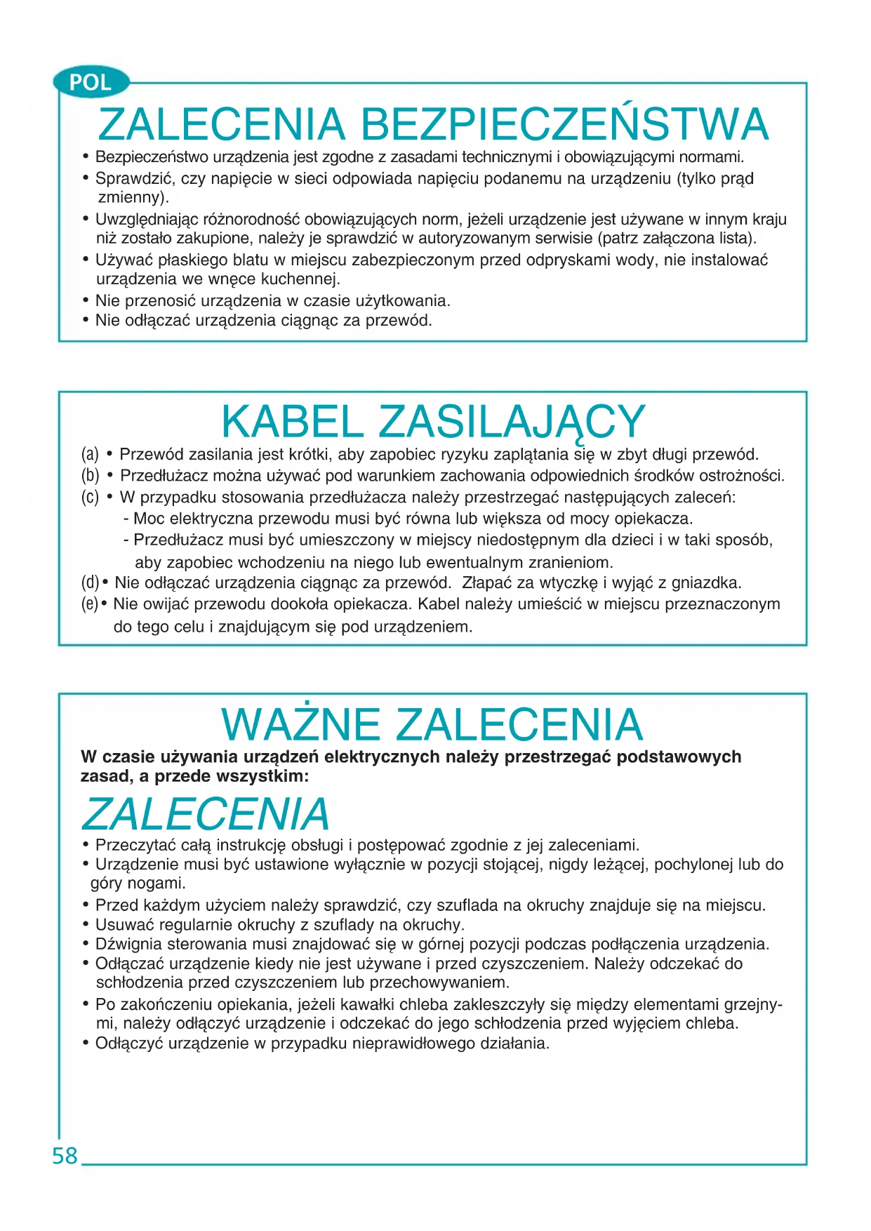 Przed ka˝dym u˝yciem nale˝y upewniç si´, ˝e toster nie jest ustawiony pod