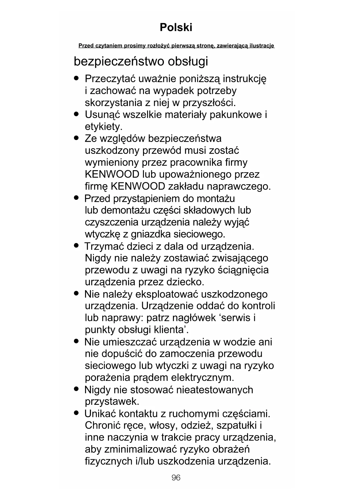 96 Przed czytaniem prosimy roz¢o¯yç pierwszå stronë, zawierajåcå ilustracje Polskil