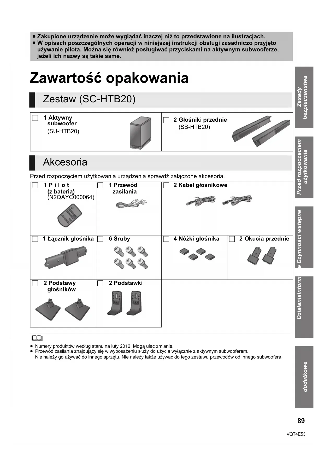SC-HTB20EG-VQT4E53_ita.book 85 ページ 2012年3月1日 木曜日 午前10時46分86 VQT4E53 Dziękujemy za zakupienie tego produktu.