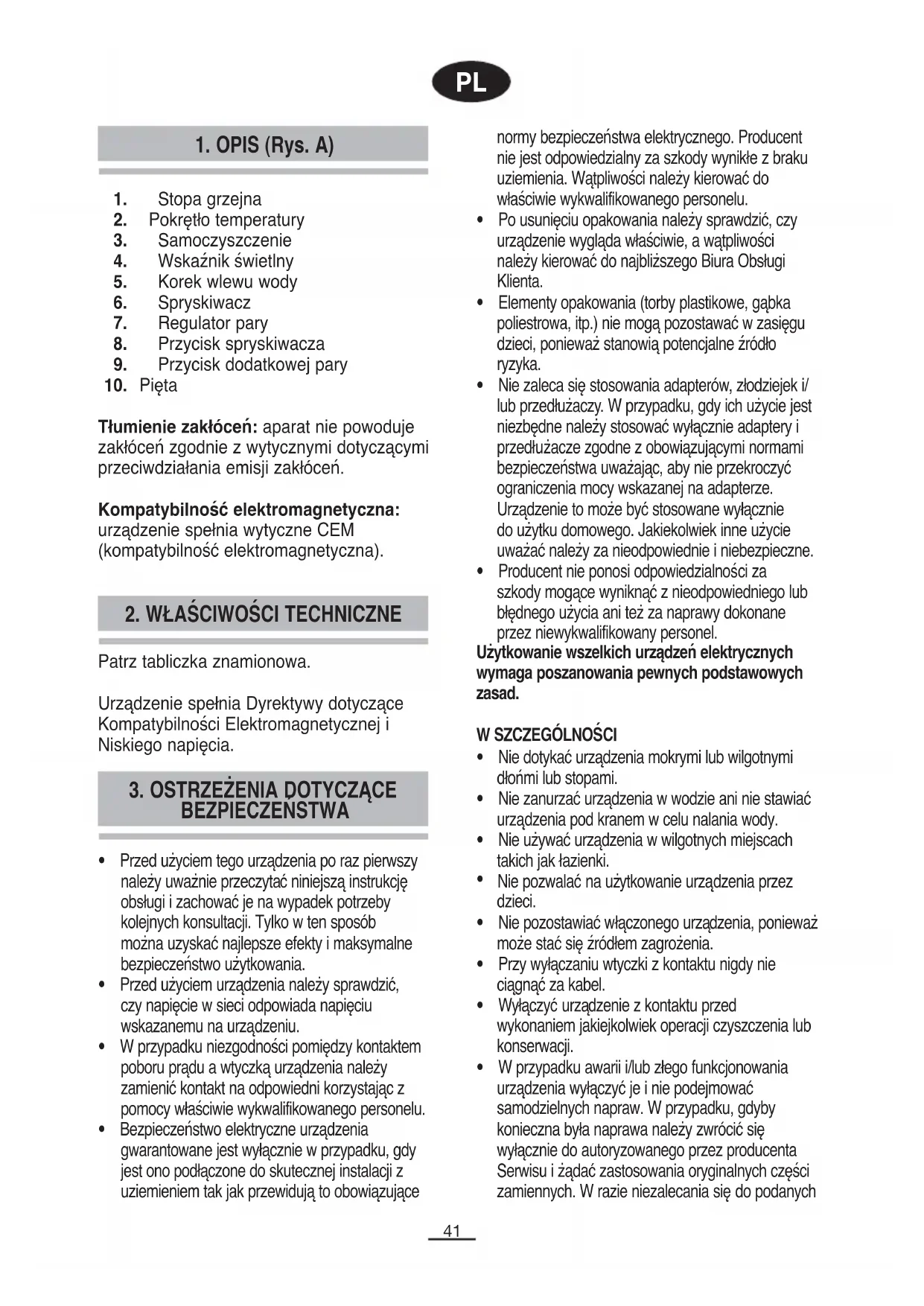 2. WŁAŚCIWOŚCI TECHNICZNE PL Patrz tabliczka znamionowa.