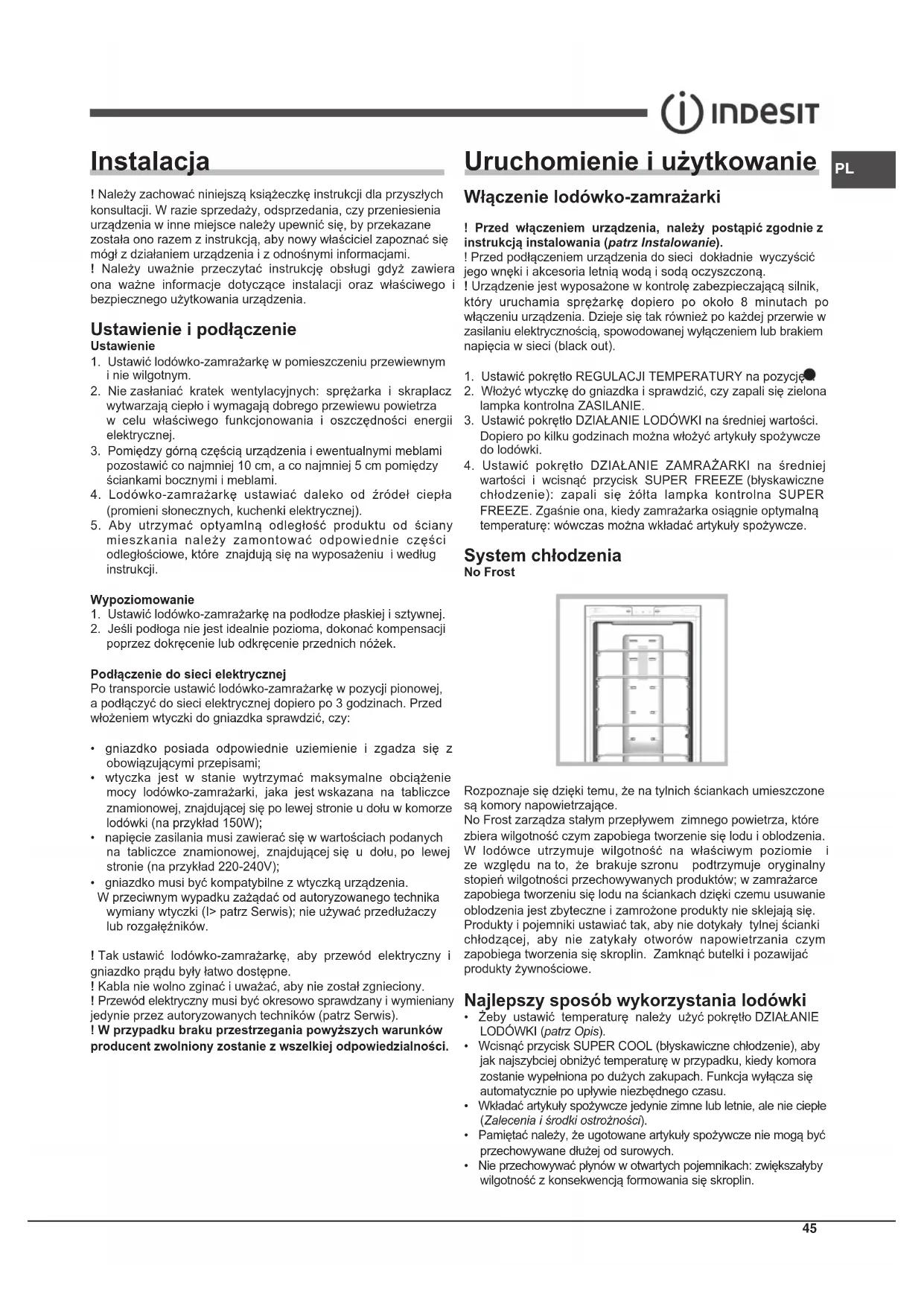 BIAA 34 F SI - Lodówka INDESIT - Bezpłatna instrukcja obsługi