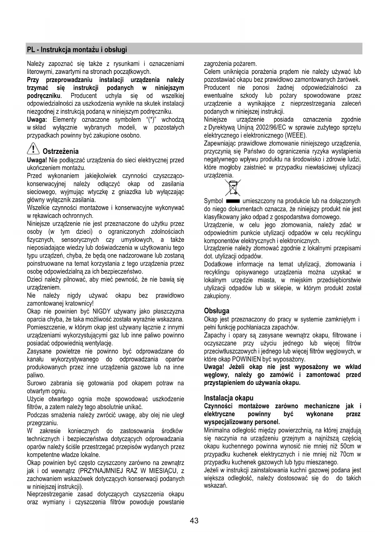 Okap należy często czyścić, tak wewnątrz jak i na zewnątrz
