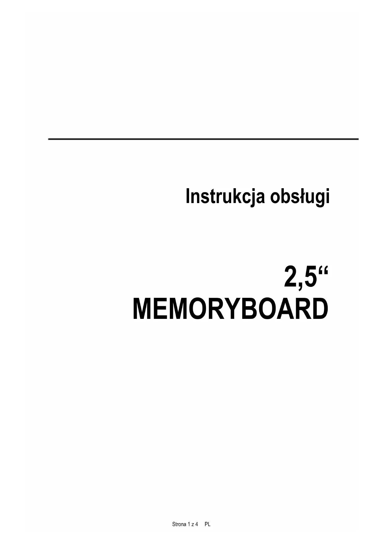 2,5“ MEMORYBOARDStrona 2 z 4 PL Dostarczone elementy Dysk twardy Intenso High-Speed USB 2.0 Kabel USB 2.0 Instrukcja obsługi + Karta gwarancyjna Dane techniczne Zewnętrzny dysk twardy 2,5“ USB 2.0 Wymiary: 15 x 82 x 128 mm Prędkość transmisji max. 480 MBit /sek (USB 2.0) Pojemność: 1MB = 1,000,000bytes / 1GB = 1,000,000,000 bytes Warunki używania Temperatura: Pracy: 5 °C bis 55 °C Przechowywania: - 40 °C bis 60 °C Względna wilgotność powietrza: Pracy, przechowywania: 8 % - 90 % Uderzenie, upadek Należy chronić urządzenie przed uderzeniem i upadkiem w każdych warunkach. Nie należy poruszać urządzeniem w czasie jego pracy. Wyładowania elektrostatyczne Urządzenie to jest wrażliwe na wyładowania elektrostatyczne. Należy je chronić przed możliwymi wyładowaniami elektrostatycznymi.