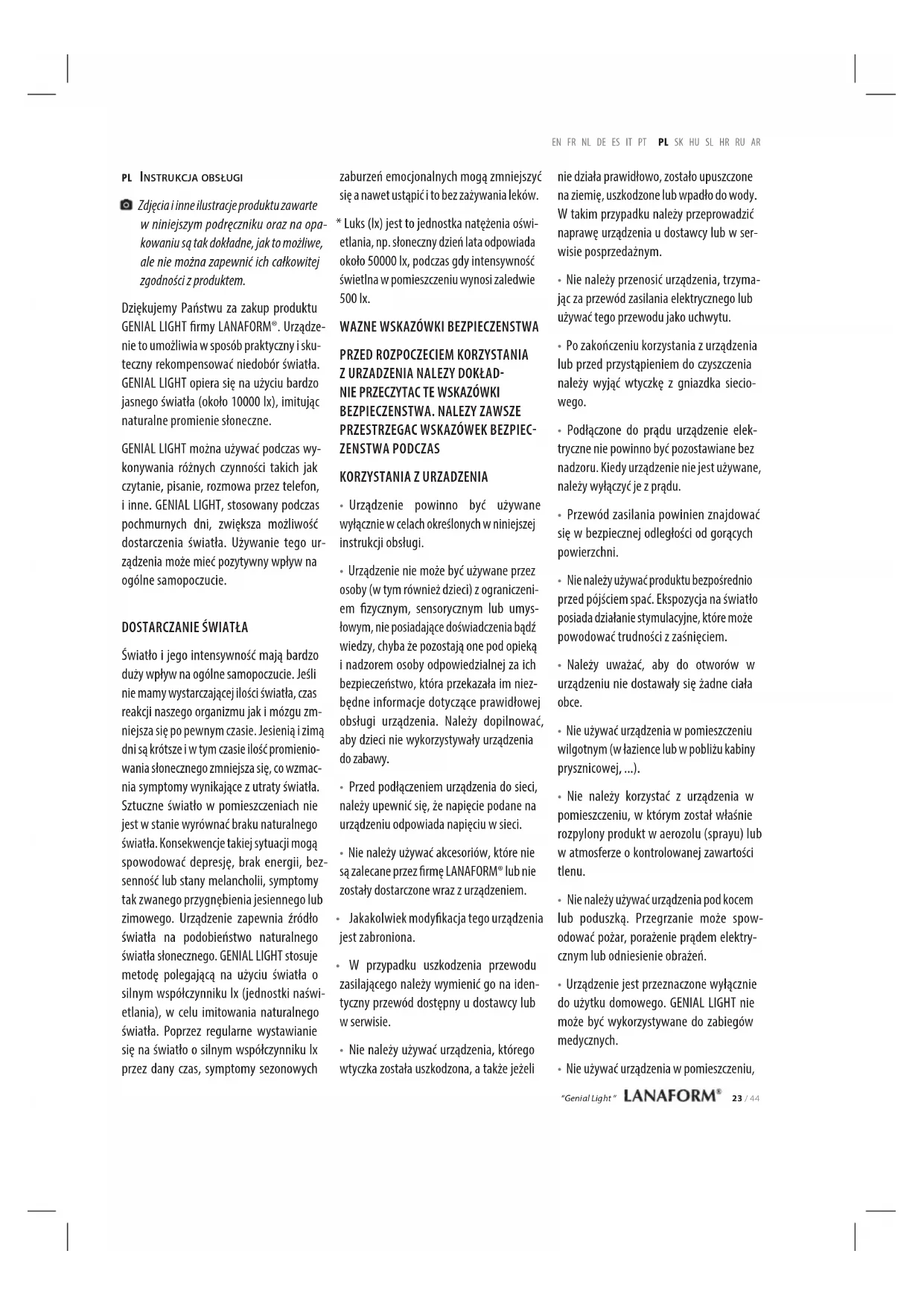 Genial Light - Terapia światłem LANAFORM - Bezpłatna instrukcja obsługi