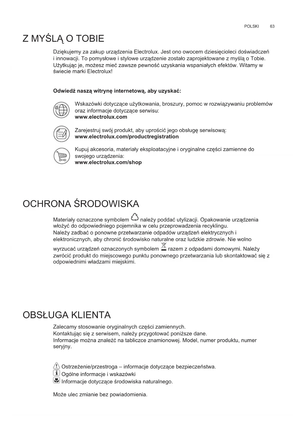 POLSKI Z MYŚLĄ O TOBIE Dziękujemy za zakup urządzenia Electrolux. Jest ono owocem dziesięcioleci doświadczeń
