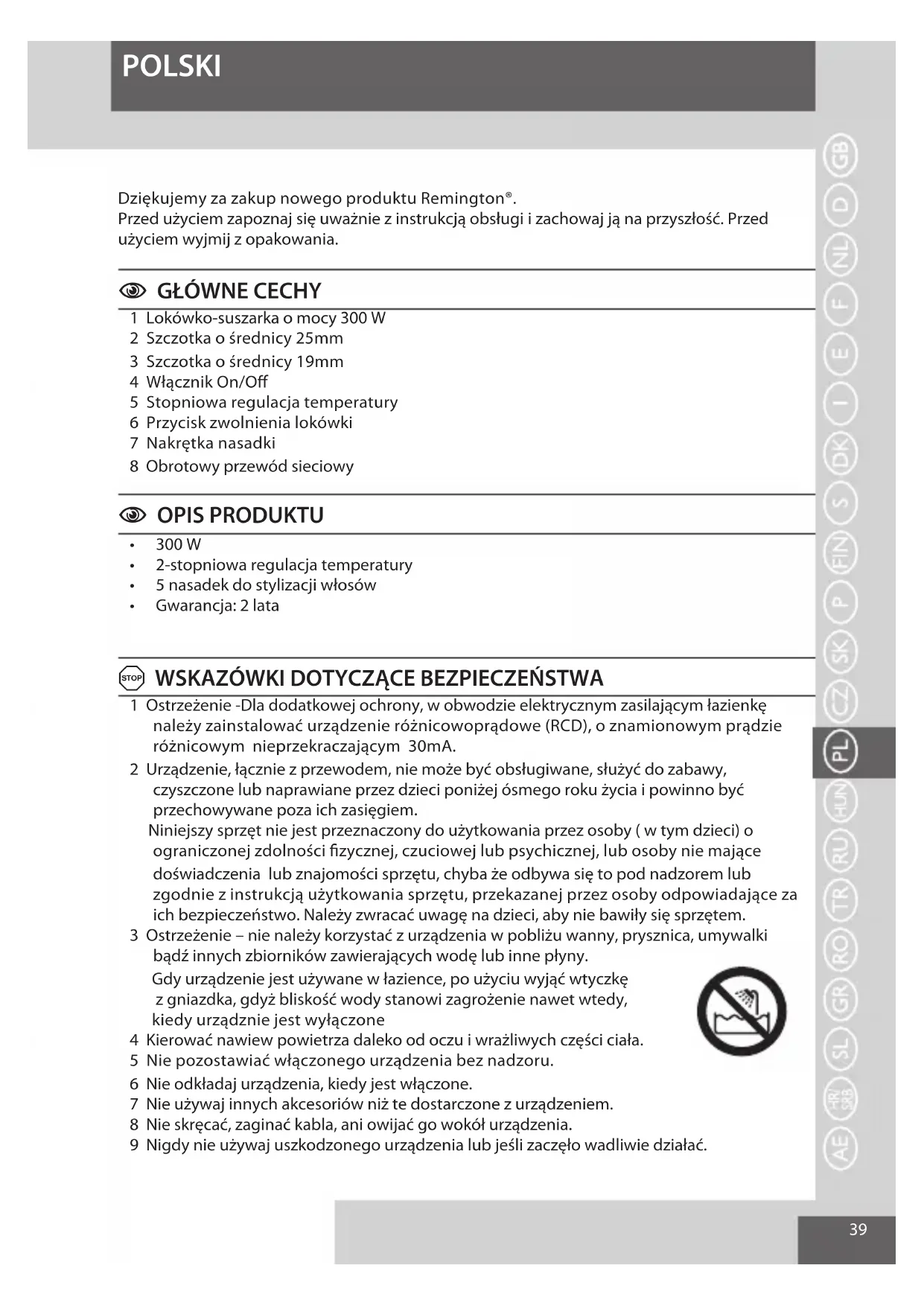 POLSKI Dziękujemy za zakup nowego produktu Remington®.