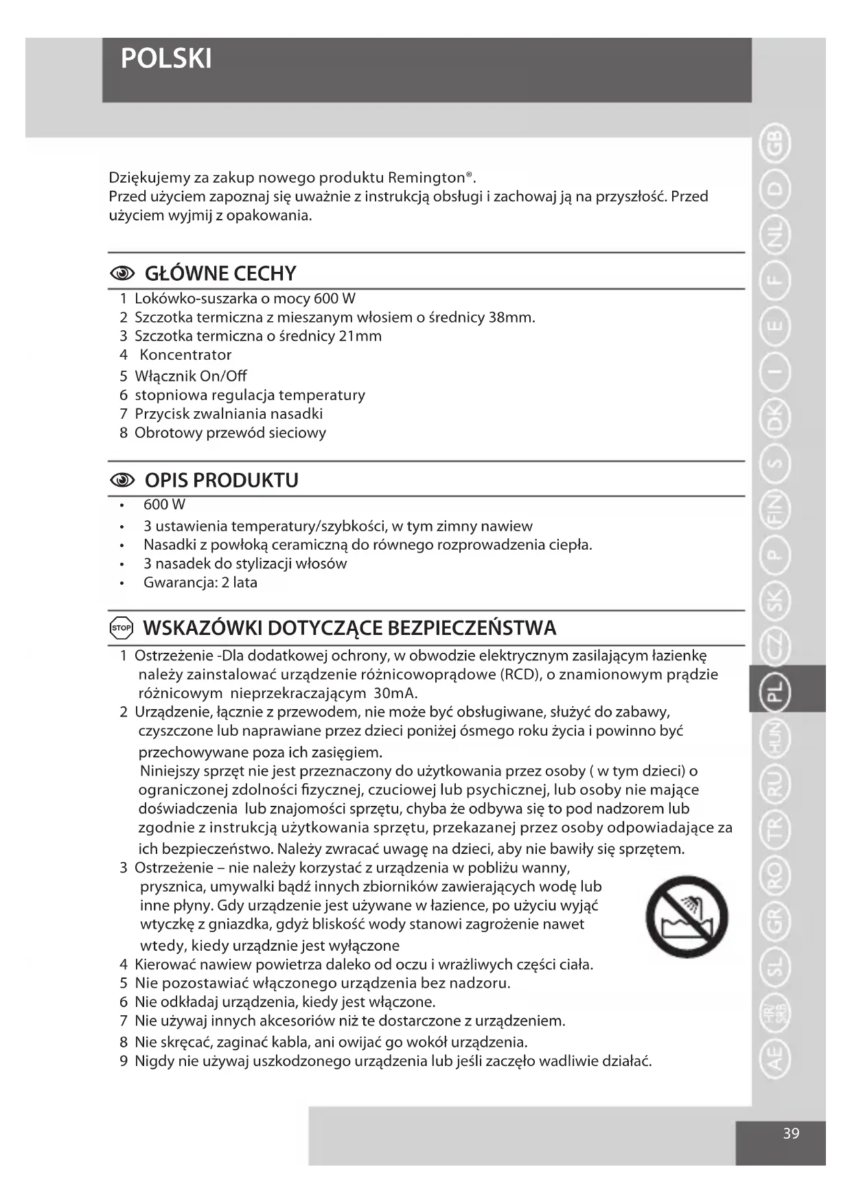 Dziękujemy za zakup nowego produktu Remington®.