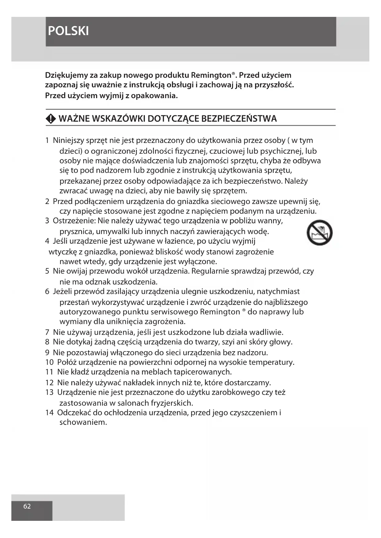Dziękujemy za zakup nowego produktu Remington®. Przed użyciem