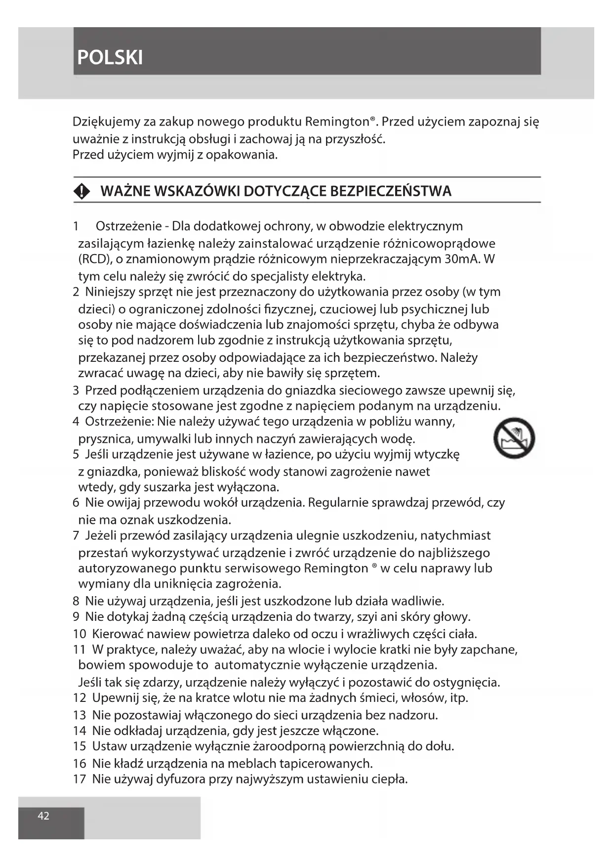 Dziękujemy za zakup nowego produktu Remington®. Przed użyciem zapoznaj się