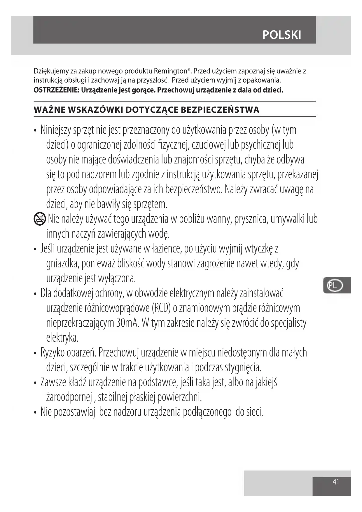 Dziękujemy za zakup nowego produktu Remington®. Przed użyciem zapoznaj się uważnie z