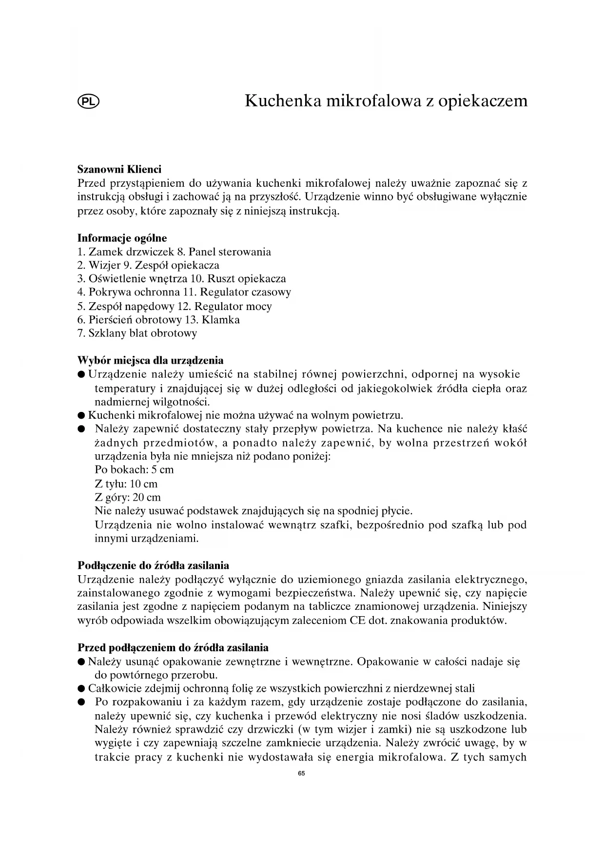 Przed przystąpieniem do używania kuchenki mikrofalowej należy uważnie zapoznać się z