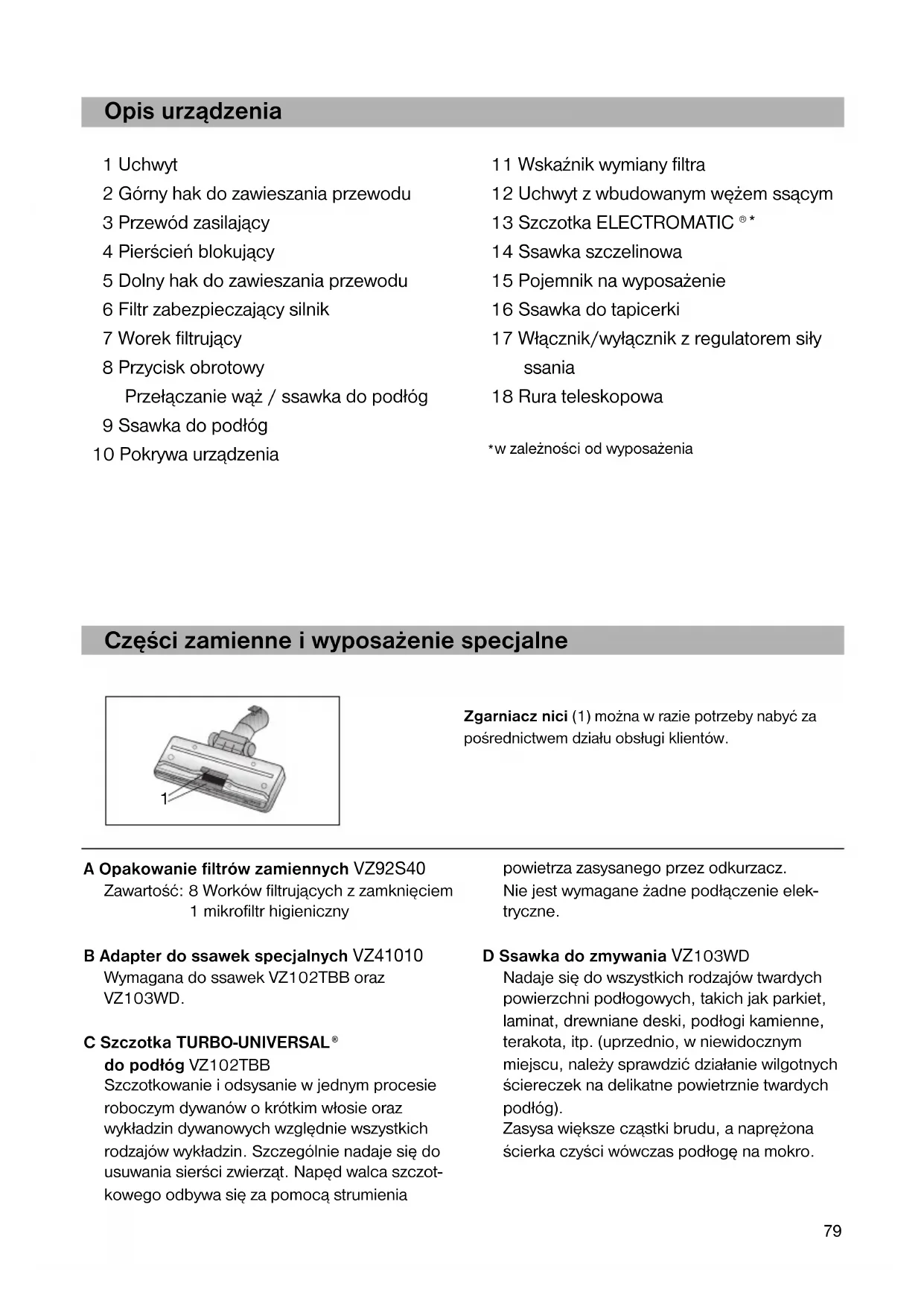 do podłóg VZ102TBB Szczotkowanie i odsysanie w jednym procesie