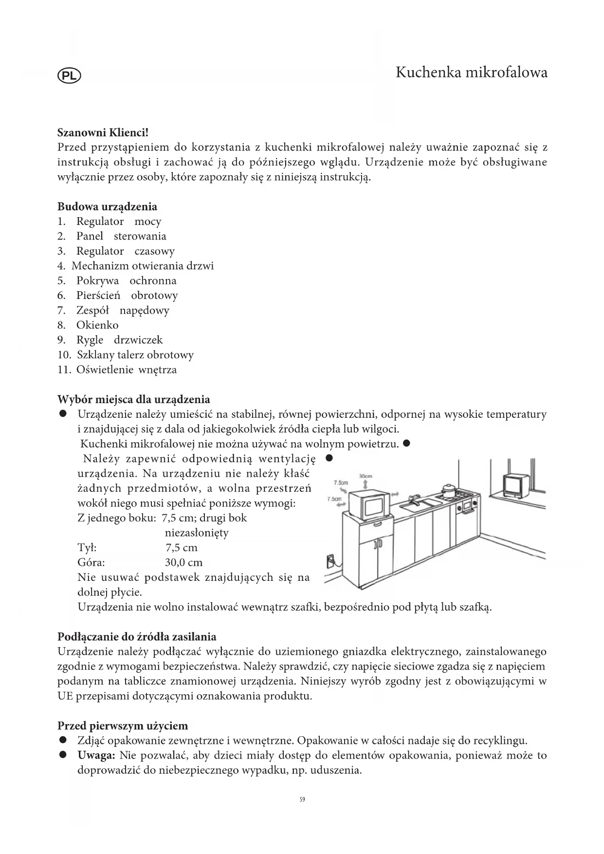 Przed przystąpieniem do korzystania z kuchenki mikrofalowej należy uważnie zapoznać się z