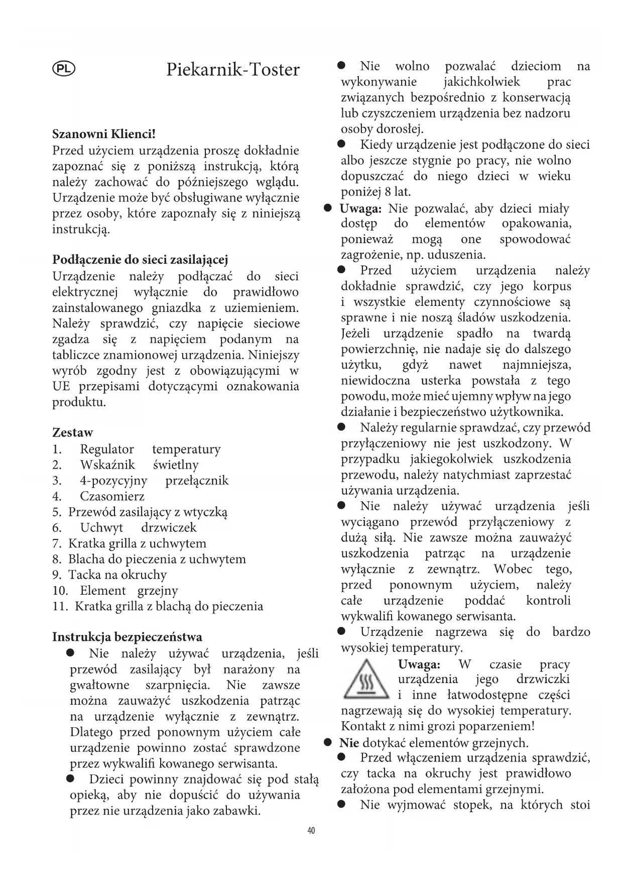 Nie dotykać elementów grzejnych.