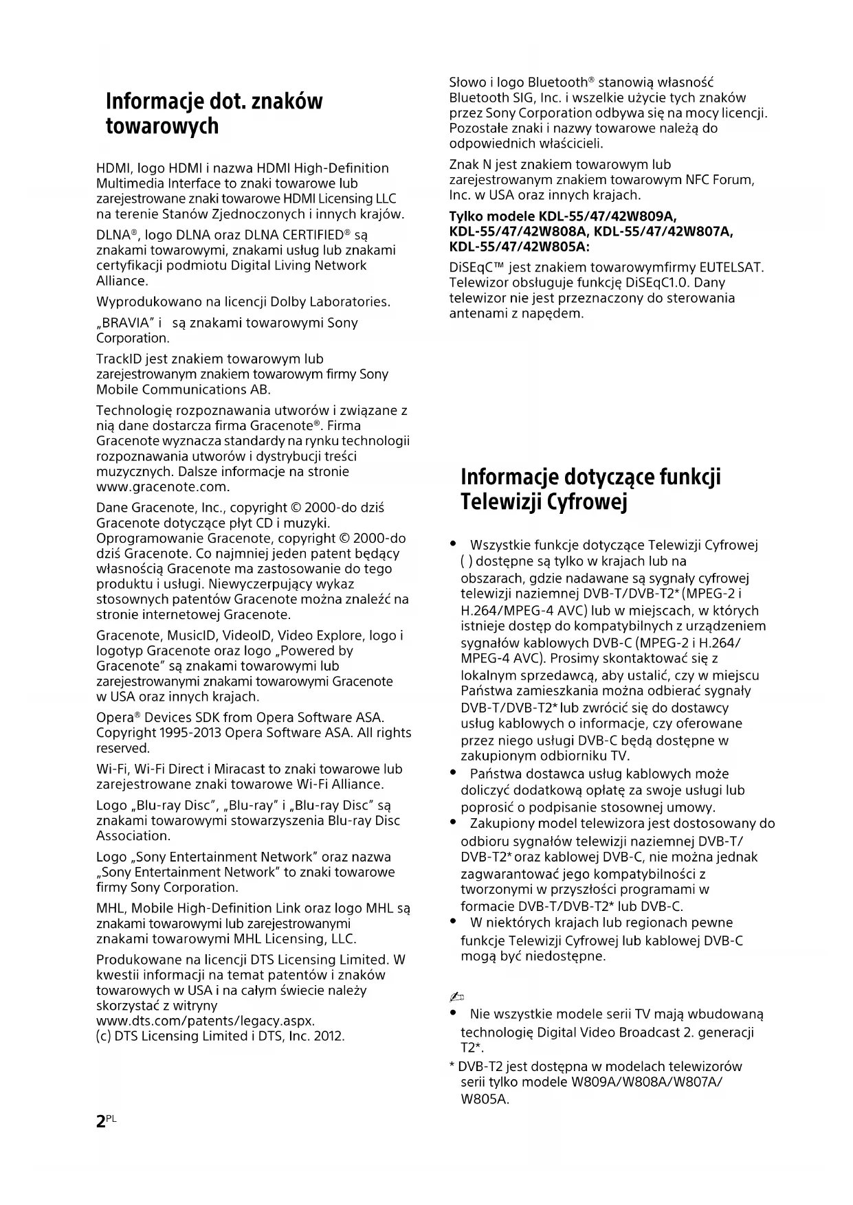 wyjątkiem modelu KDL-55/47/42W802A)