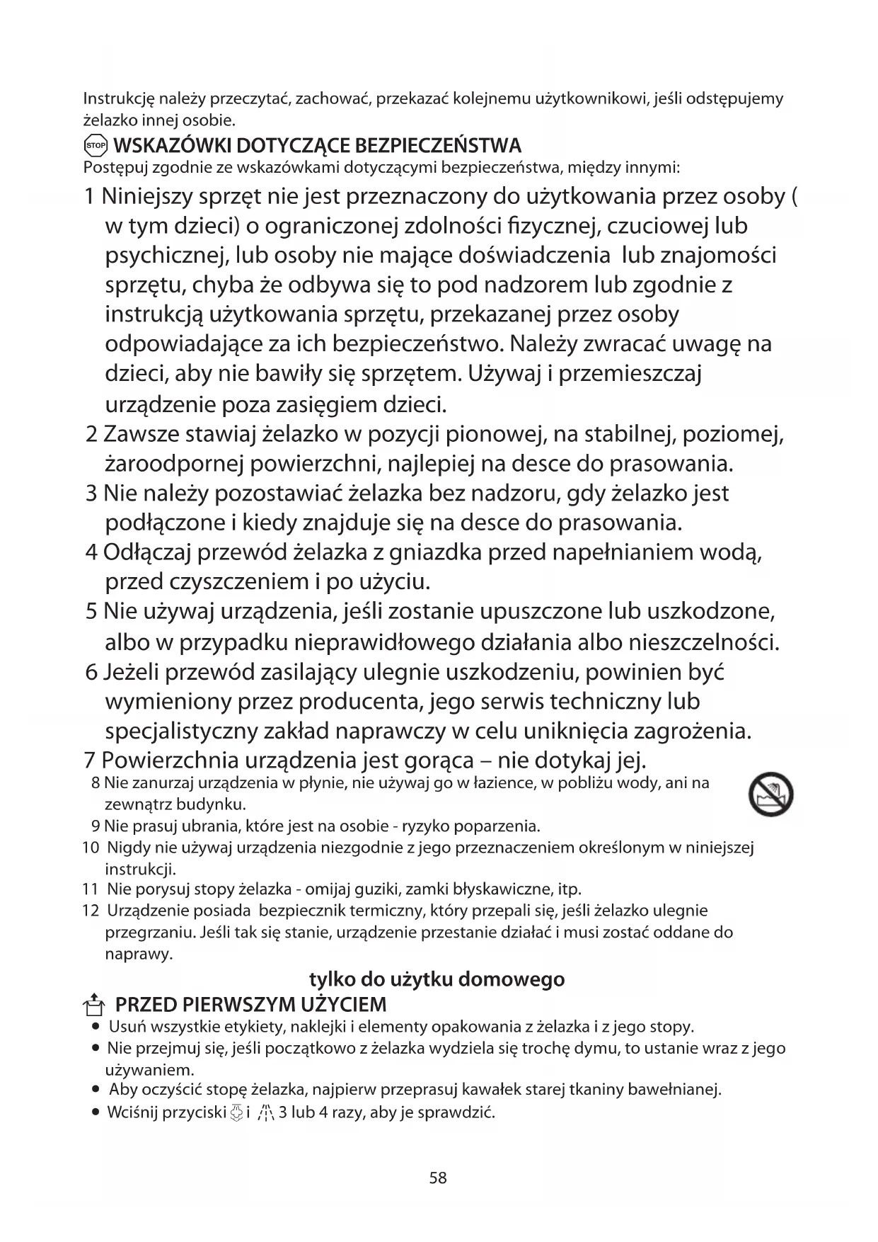 Instrukcję należy przeczytać, zachować, przekazać kolejnemu użytkownikowi, jeśli odstępujemy żelazko innej osobie.