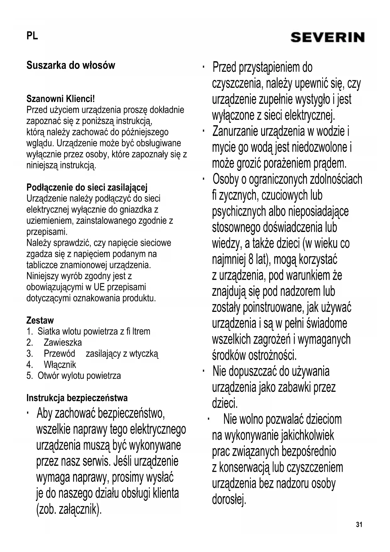 HT 0161 - Suszarka do włosów SEVERIN - Bezpłatna instrukcja obsługi