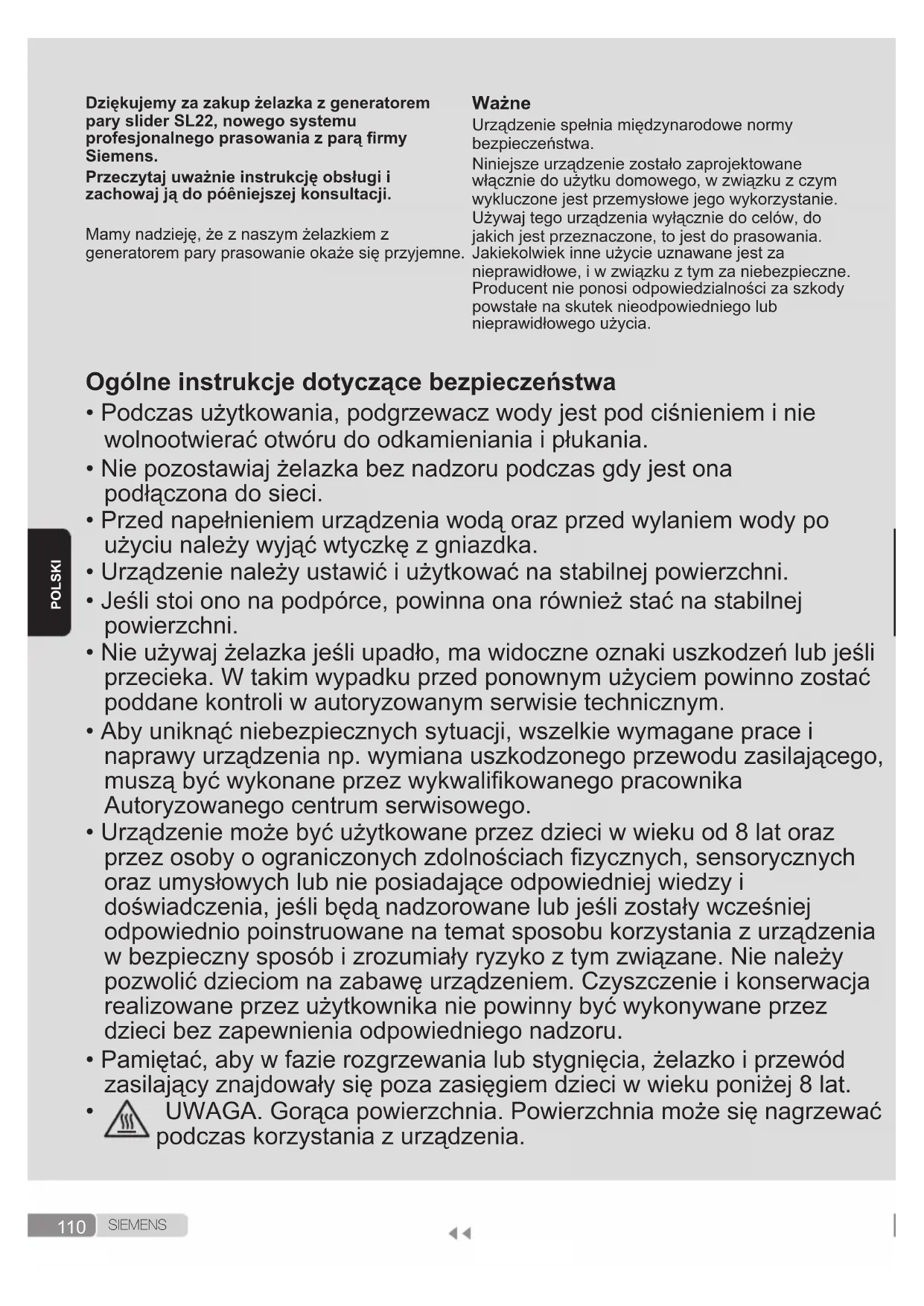 S I E M E N S POLSKI Dziękujemyzazakupżelazkazgeneratorem