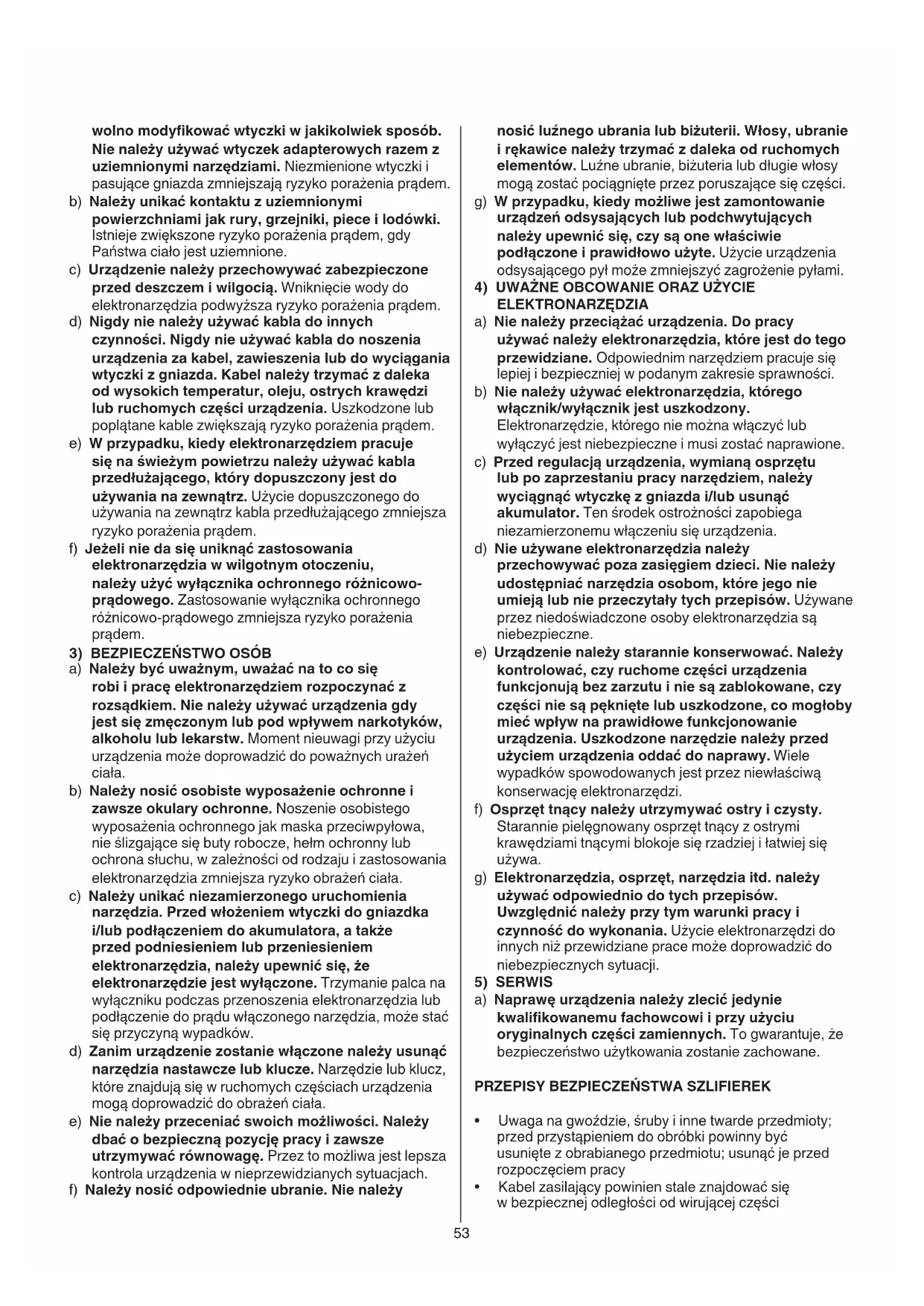 - nie należy przechylać elektronarzędział dzięki czernu