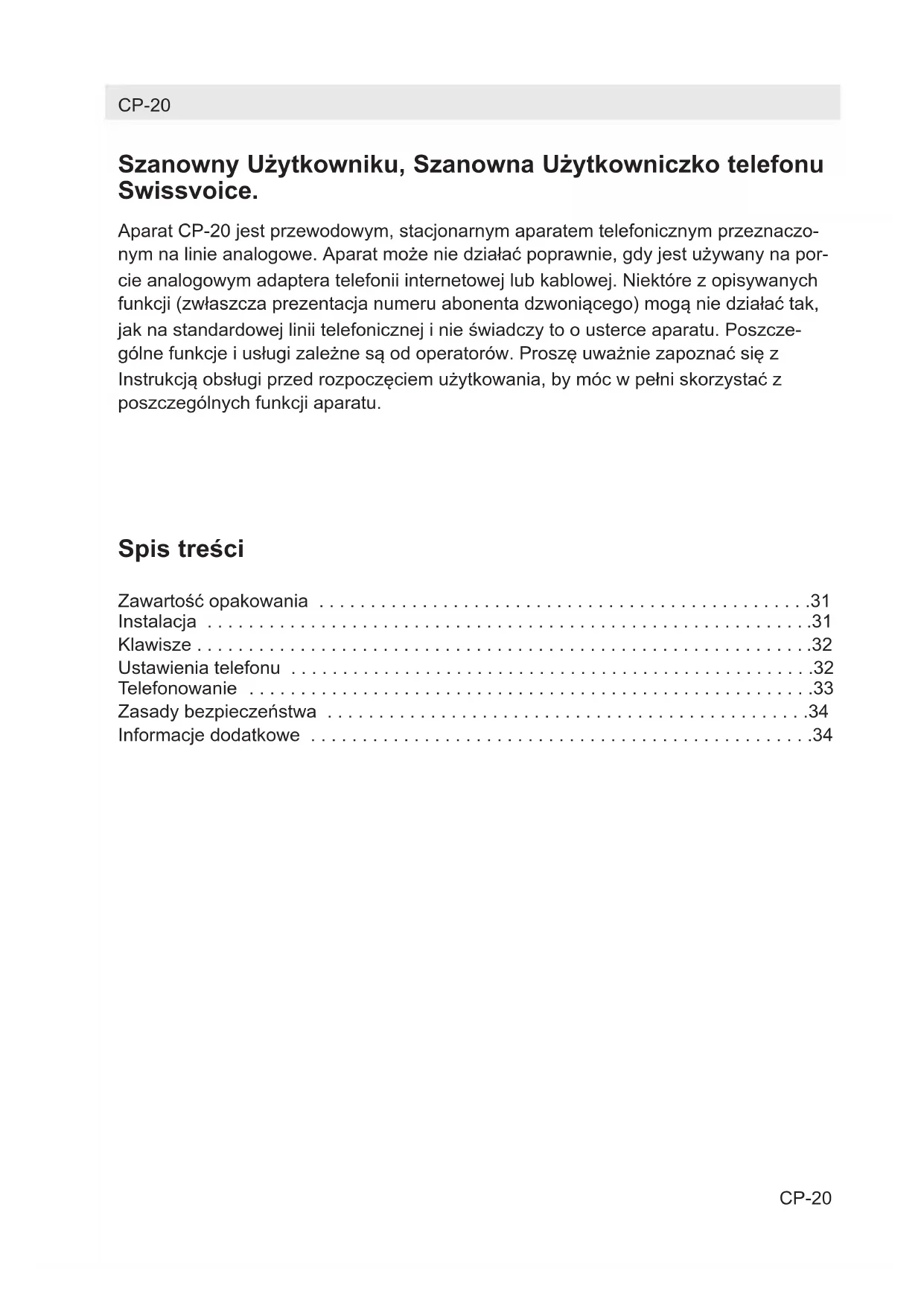 INSTRUKCJA OBSŁUGI CP20 SWISSVOICE