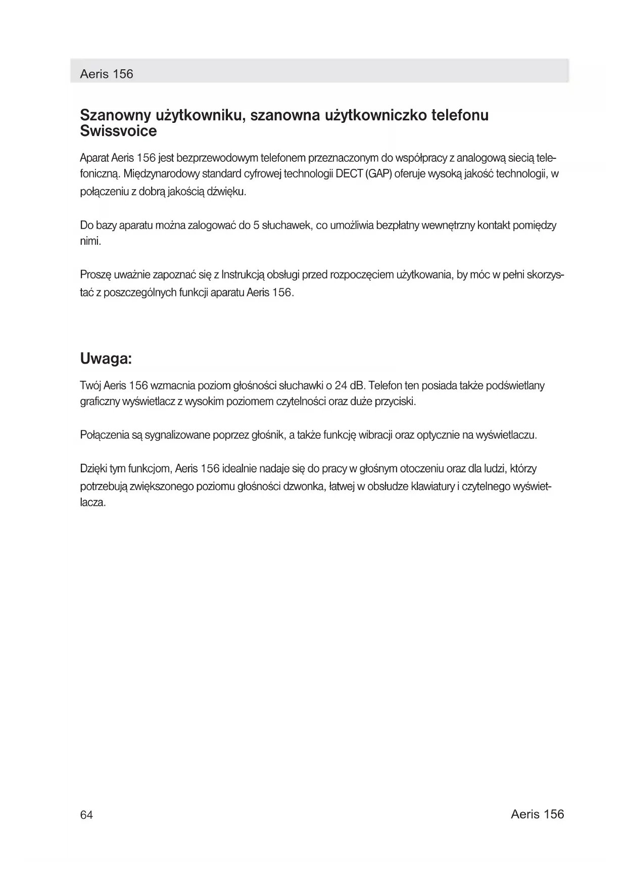 INSTRUKCJA OBSŁUGI Aeris 156 SWISSVOICE