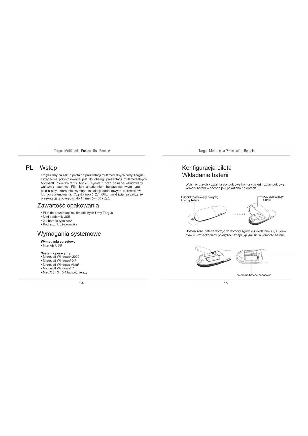 komory bateriiTargus Multimedia Presentation Remote