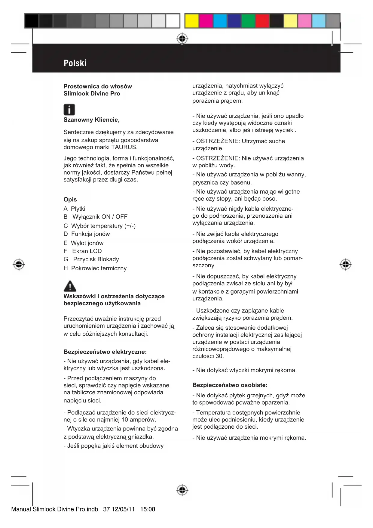 Slimlook Divine Pro - Prostownica do włosów TAURUS - Bezpłatna instrukcja obsługi