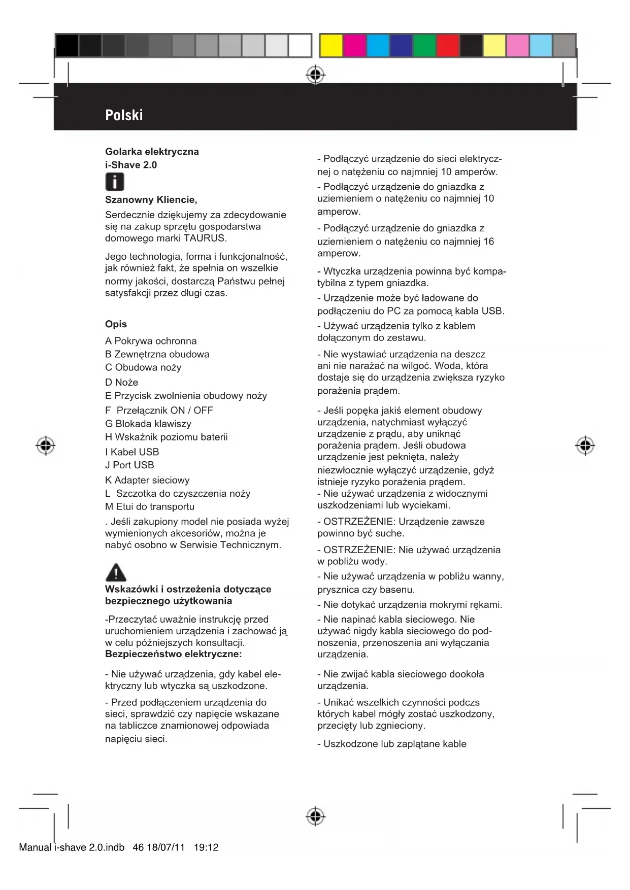 INSTRUKCJA OBSŁUGI IShave 2.0 TAURUS