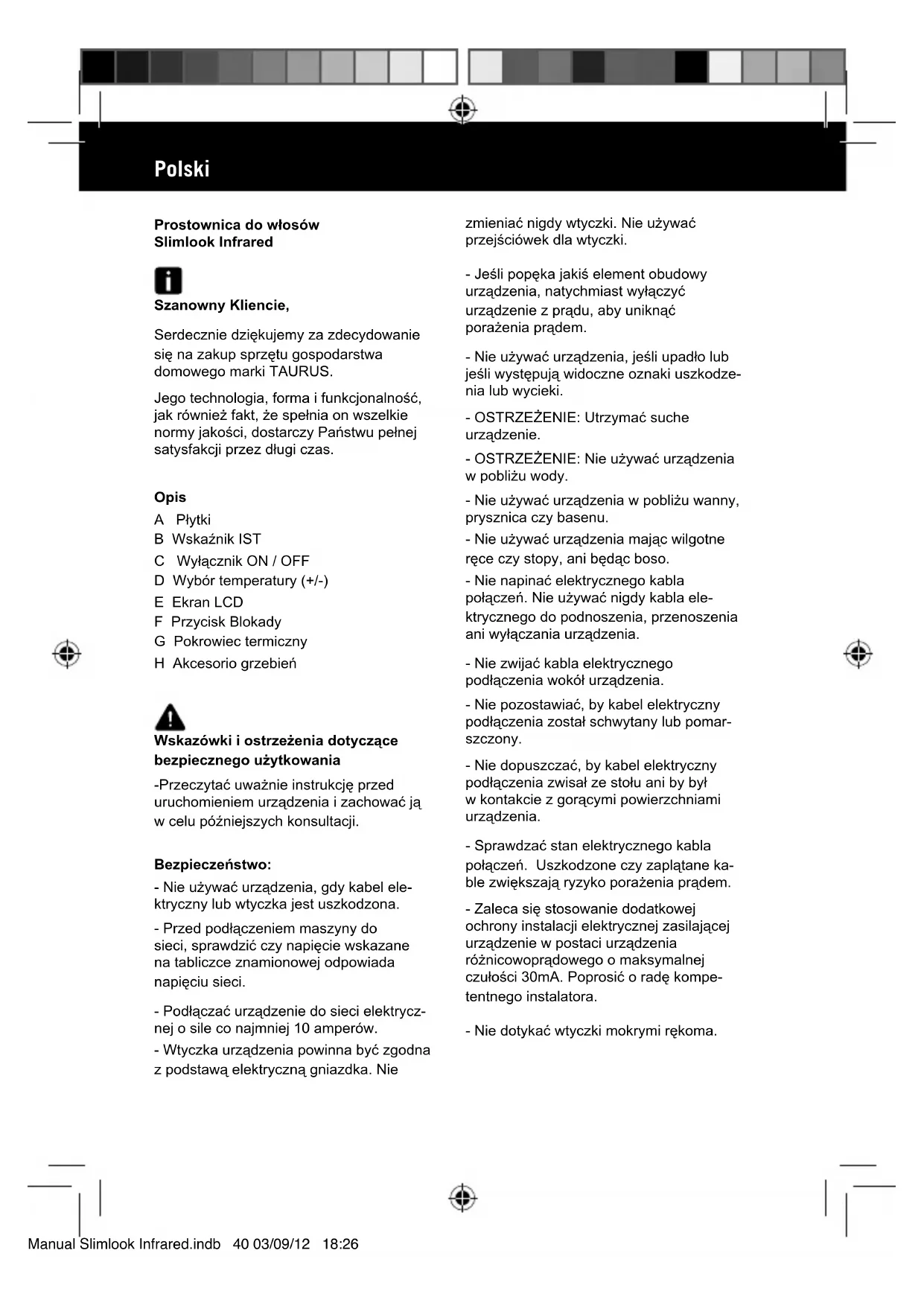 Slimlook Infrared - Prostownica do włosów TAURUS - Bezpłatna instrukcja obsługi