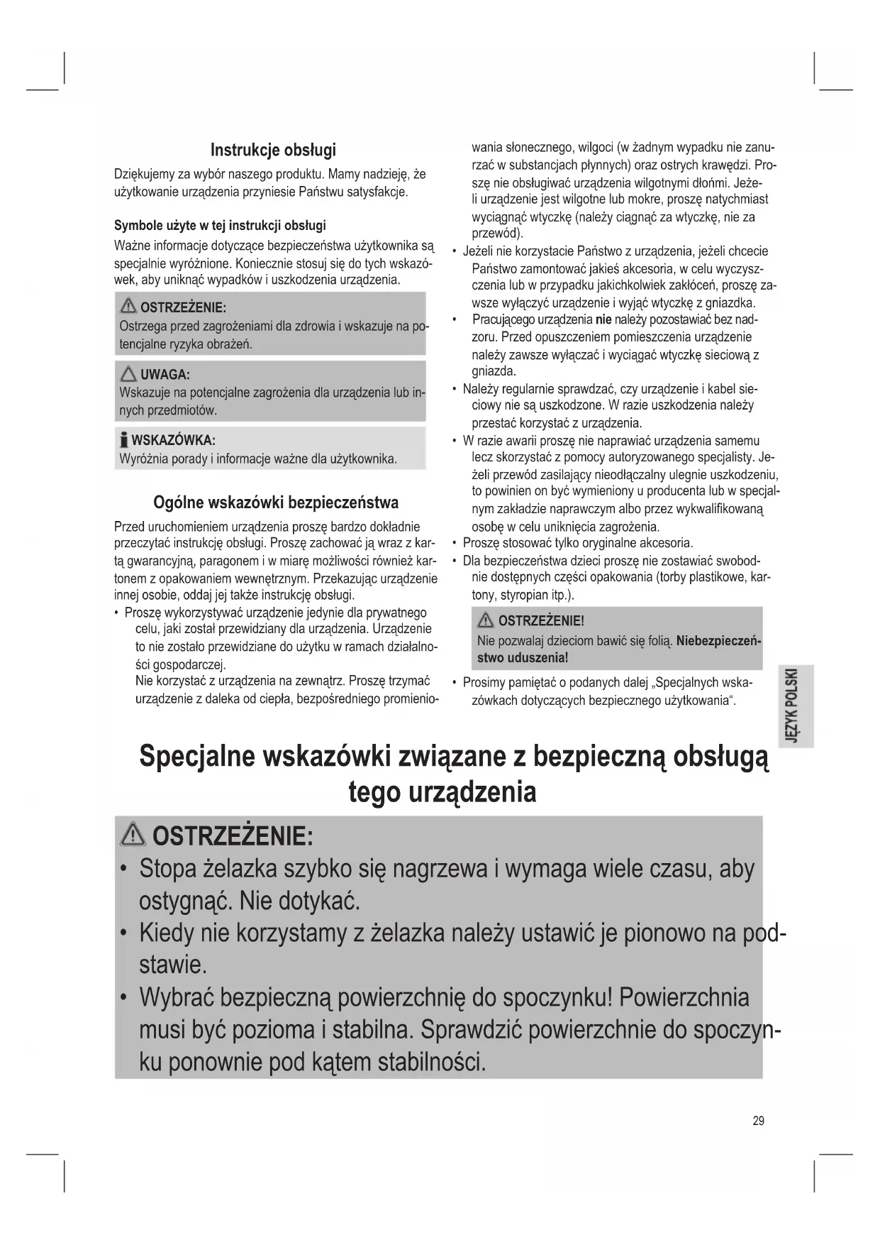 • Żelazko musi być używane oraz odstawione na stabilnej po-
