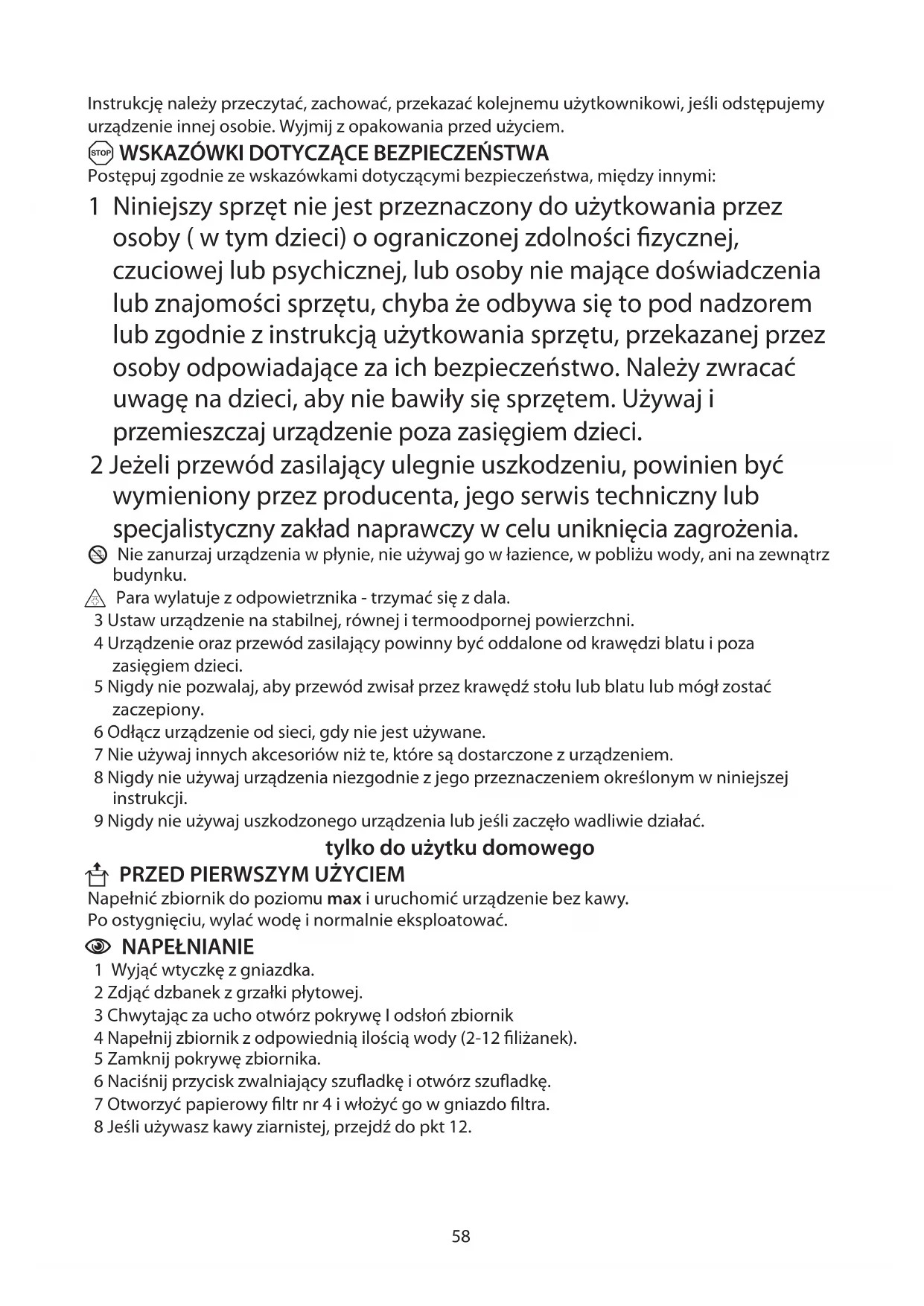 42 Dzbanek i gniazdo filtra mogą być myte w ciepłej wodzie z mydłem. Potem dokładnie