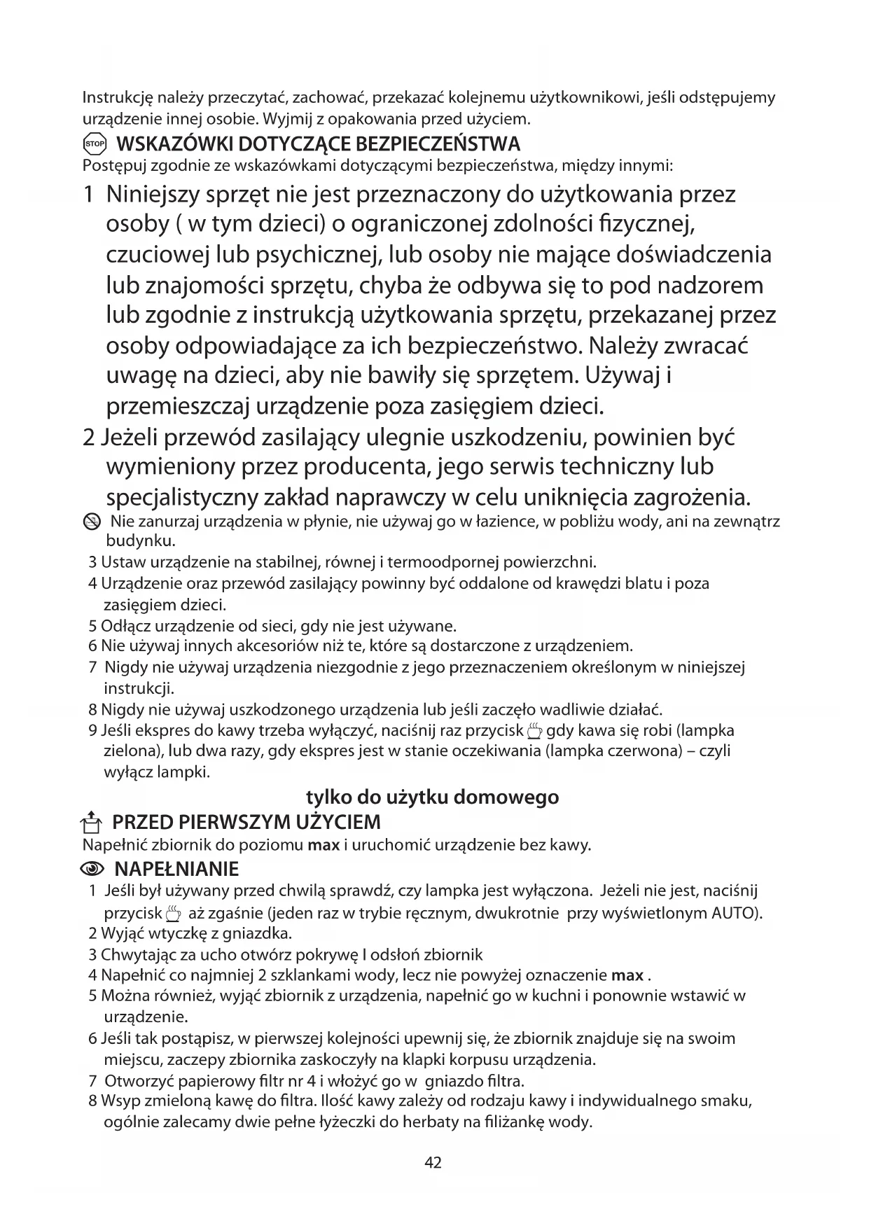 42 Żadna część urządzenia nie może być myta w zmywarce do naczyń.
