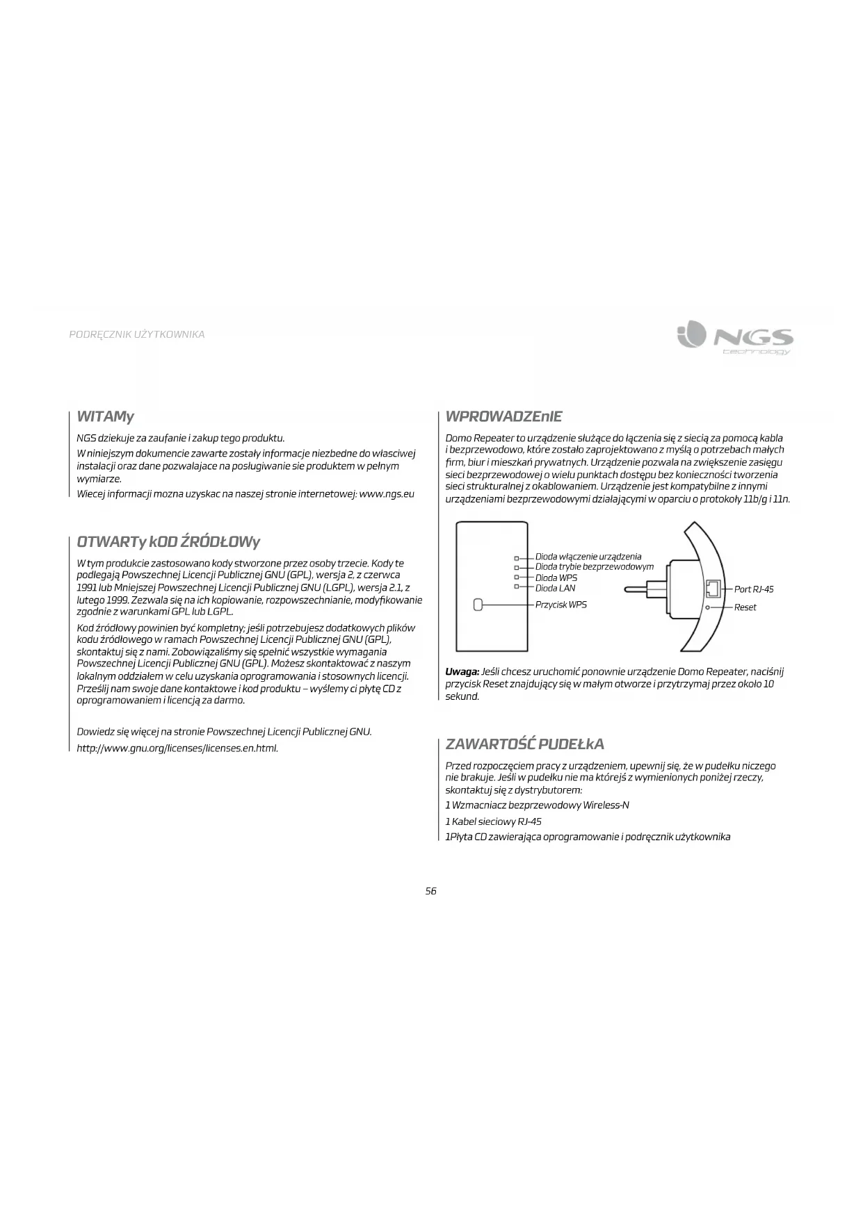 Domo Repeater - Wifi répéteur NGS - Bezpłatna instrukcja obsługi