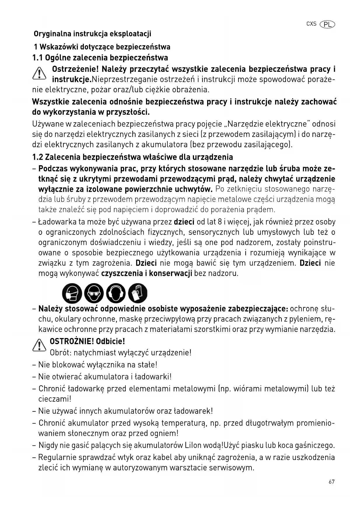 Wszystkie zalecenia odnośnie bezpieczeństwa pracy i instrukcje należy zachować
