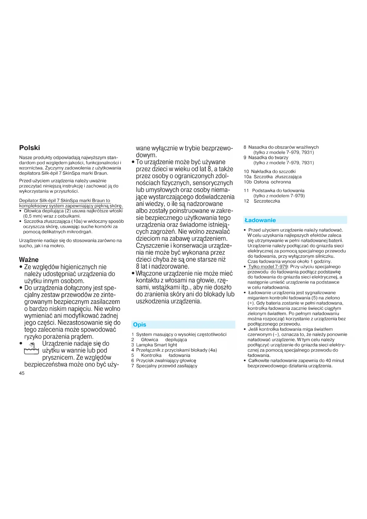 Silkepil 7 SkinSpa 7929 - Depilator BRAUN - Bezpłatna instrukcja obsługi