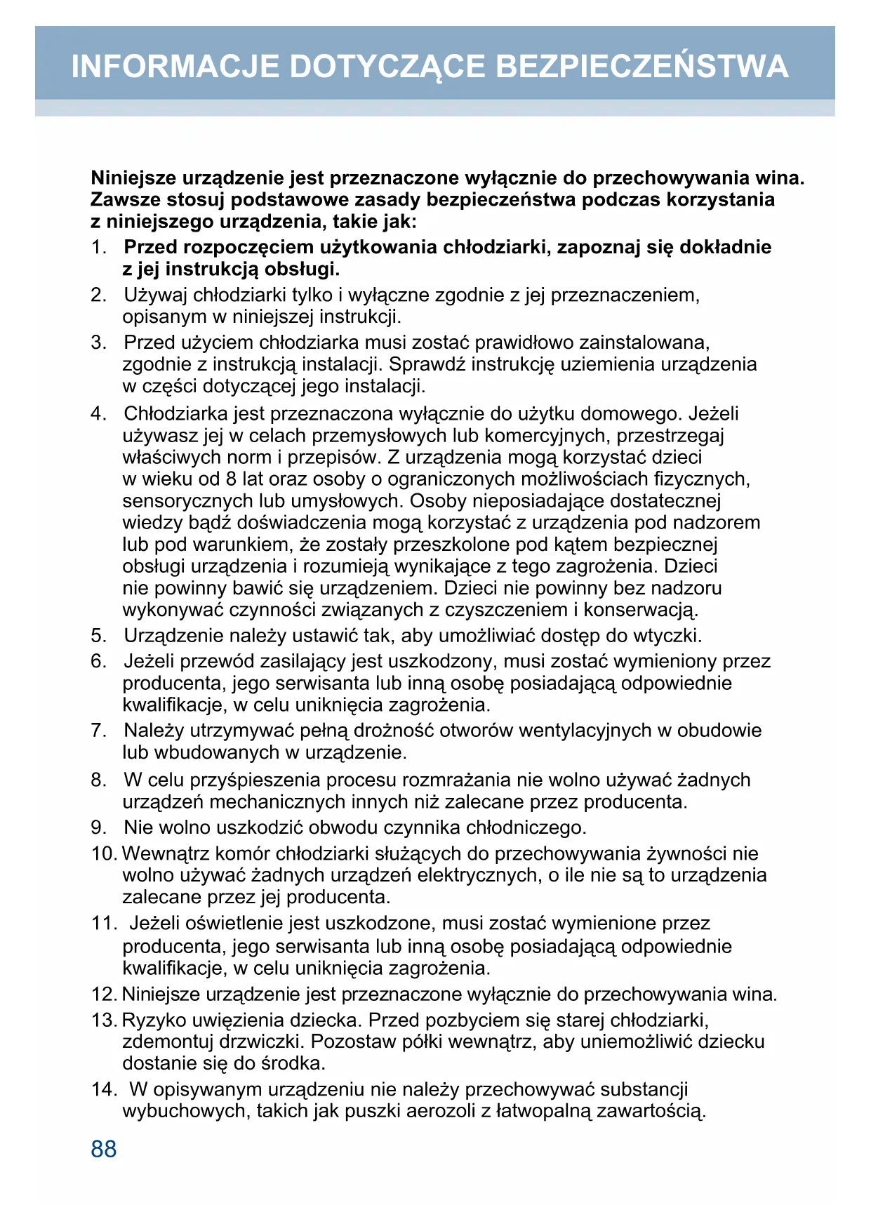 PL INFORMACJE DOTYCZĄCE BEZPIECZEŃSTWA 88