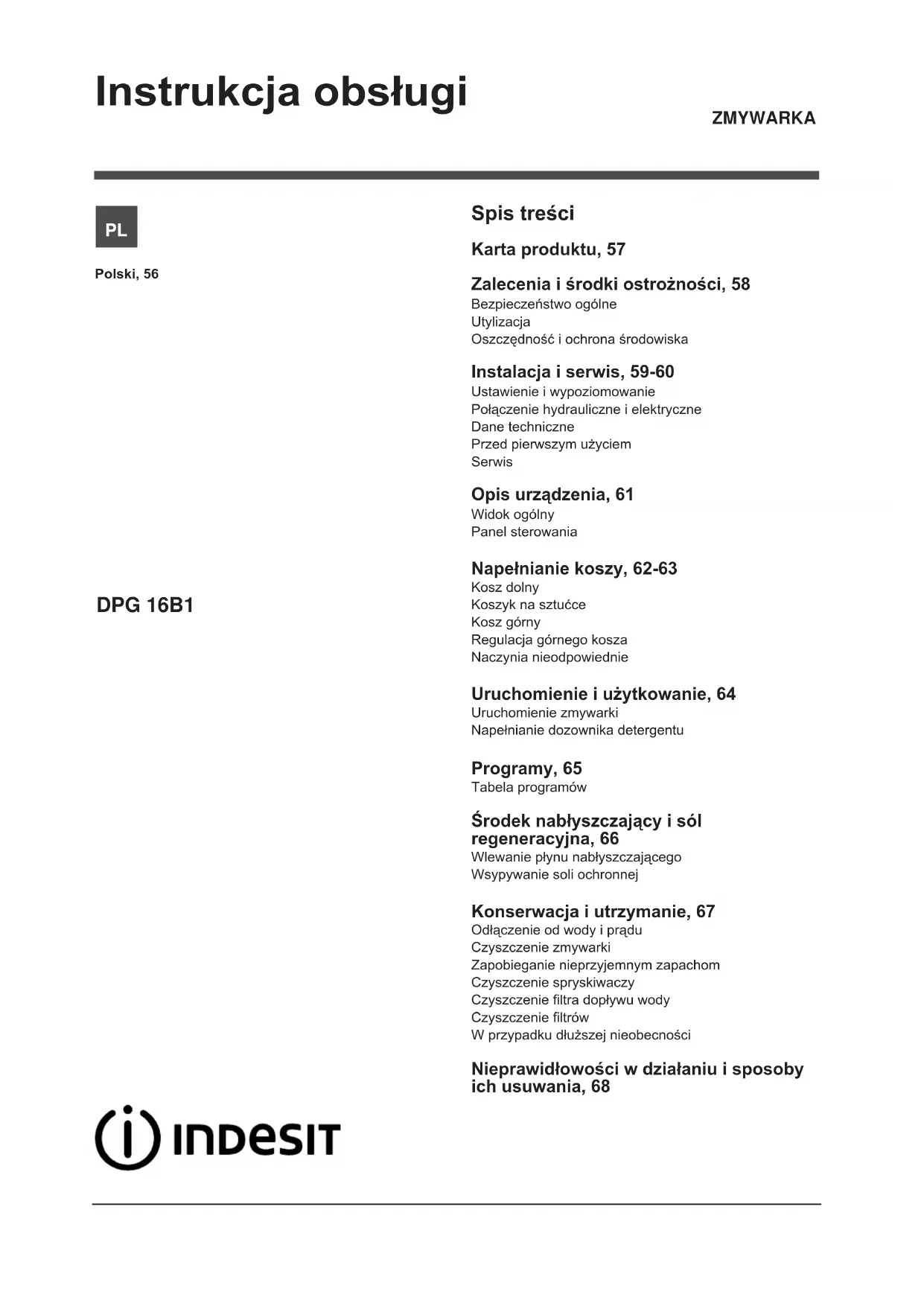 INSTRUKCJA OBSŁUGI DPG 16B1 A K EU INDESIT