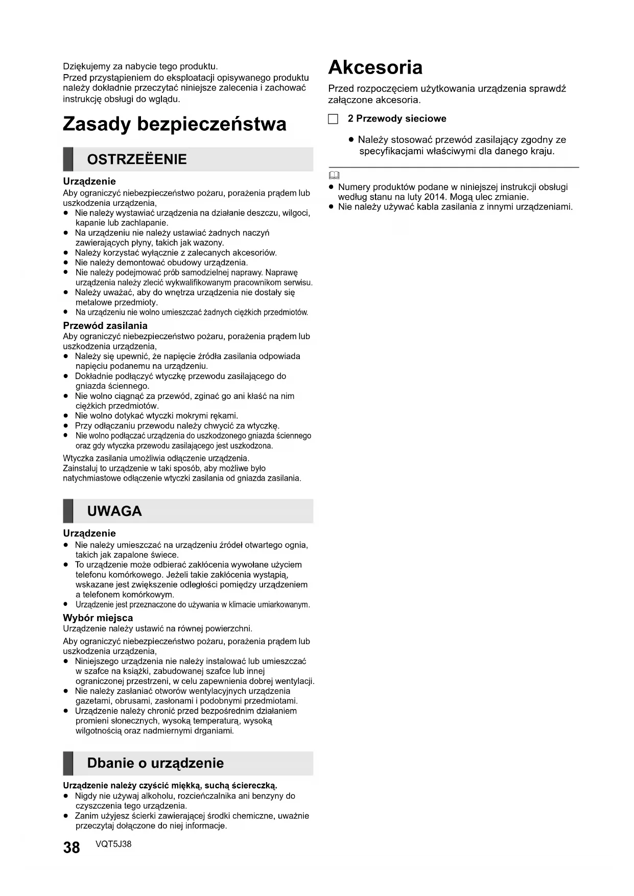 OSTRZEËENIE UWAGA Dbanie o urządzenie